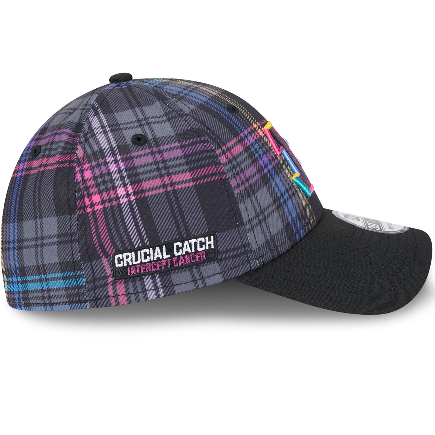 Unterstütze den weltweiten Kampf gegen Krebs mit der offiziellen New Era 2024 NFL Crucial Catch On-Field Kappe. Diese Stretch Fitted NFL Cap wird während der 2024-25 Crucial Catch Kampagne im Oktober an den NFL-Seitenlinien getragen. Die Cap ist auf der Vorderseite hochwertig mit dem bunt abgesetzten Cincinnati Bengals Teamlogo bestickt. Die rechte Capseite ist mit dem CRUCIAL CATCH - INTERCEPT CANCER Patch bestickt. Die Rückseite ziert das aufgestickte NFL Logo. Das Sublimierte Karo-Design auf allen sechs Panels in den typischen Crucial Catch Farben sorgt für einen einzigartigen Look.
