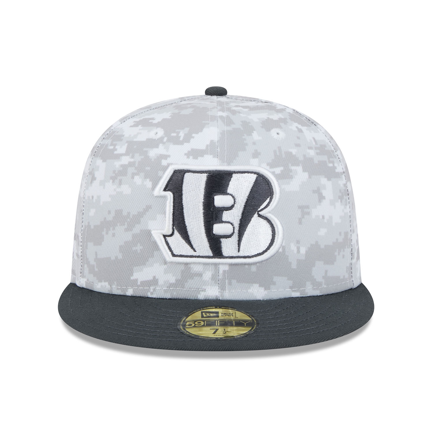 New Era American Football Cap von deinen Cincinnati Bengals im Fitted 59FIFTY Style aus der offiziellen On-Field 2024 NFL Salute to Service Kollektion.