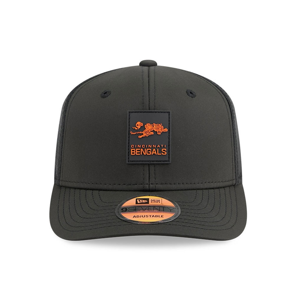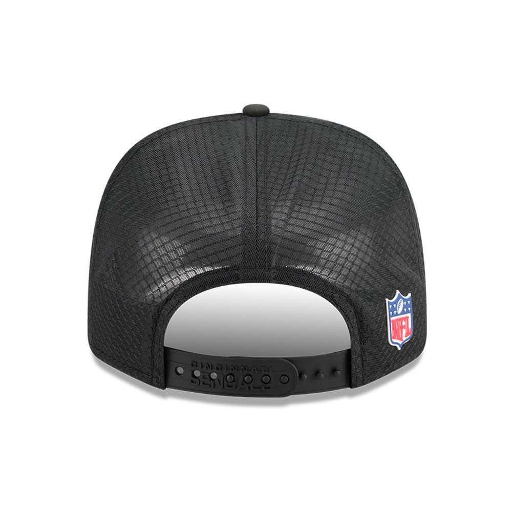 New Era American Football Historic Snapback Cap von deinen Cincinnati Bengals im 9SEVENTY Trucker Style aus der offiziellen 2025 NFL On-Field Sideline Kollektion.