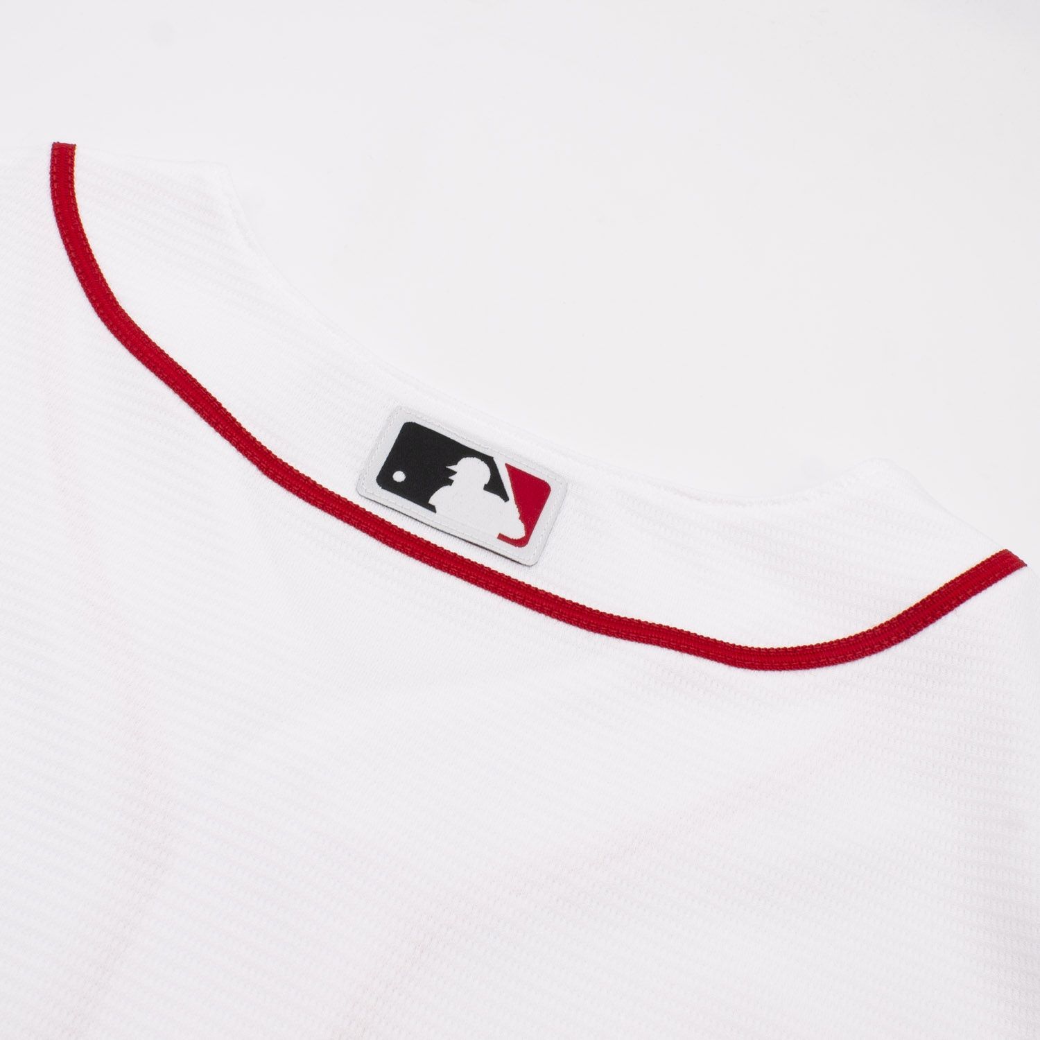 Zeige deine Loyalität gegenüber den Cincinnati Reds mit diesem Nike Replica Team-Trikot vom offiziellen Ausrüster der Major League Baseball. Dieses Nike MLB Trikot ist im Design der originalen Reds-Spieltrikots gehalten und ähnelt den originalen On-Field Trikots in fast allen Belangen. Die Vorderseite ist mit dem Reds Team-Logo dekoriert (Twill-Patch-Thermodruck); auf der Rückseite ist das teamfarbene MLB-Logo direkt am Kragen aufgenäht. Das Baseball Trikot überzeugt mit seinem modernen, athletischen Schnitt und dem atmungsaktiven Nike-Material. Mit der durchgehenden Knopfleiste auf der Vorderseite kannst du das Jersey sowohl als offenes Hemd oder als lässiges Shirt tragen. Abgerundet wird das Design durch das Nike Swoosh Logo direkt auf der rechten Brustseite und dem Genuine Merchandise Shield am Hemdsaum. Das Hersteller-Label im Nacken ist ebenfalls gedruckt, um einen optimalen Tragekomfort zu gewährleisten.