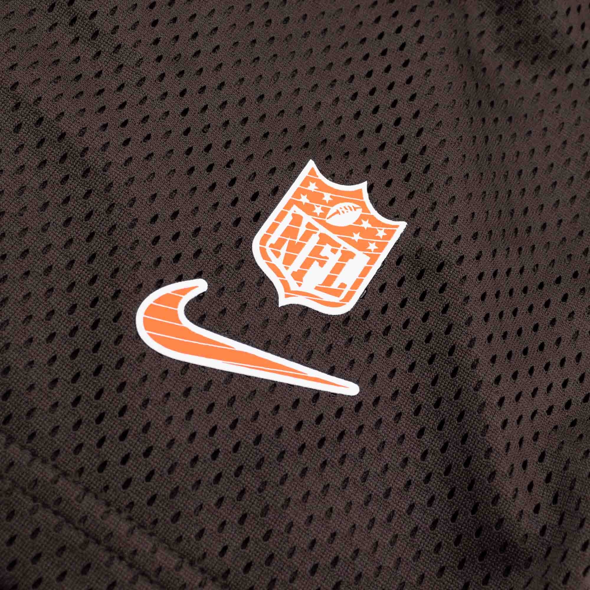 Nike Herren American Football Dri-FIT Mesh Shorts von deinen Cleveland Browns im offiziellen 2024 NFL On-Field Sideline Design.
