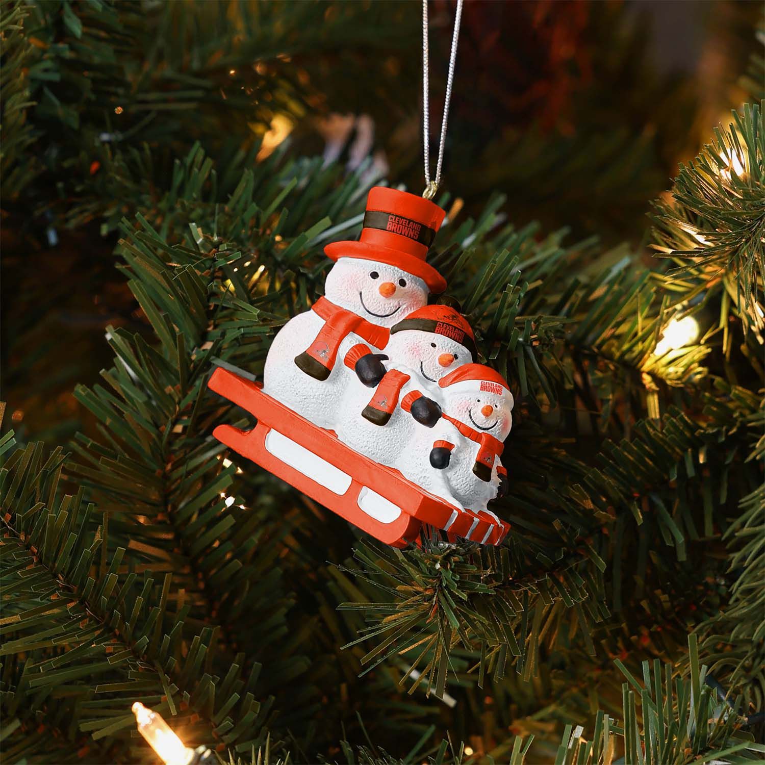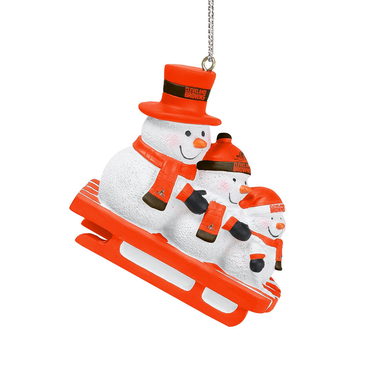 FOCO NFL Christbaumschmuck mit Schneemännern auf einem Schlitten von deinen Cleveland Browns passend für jeden Weihnachtsbaum.