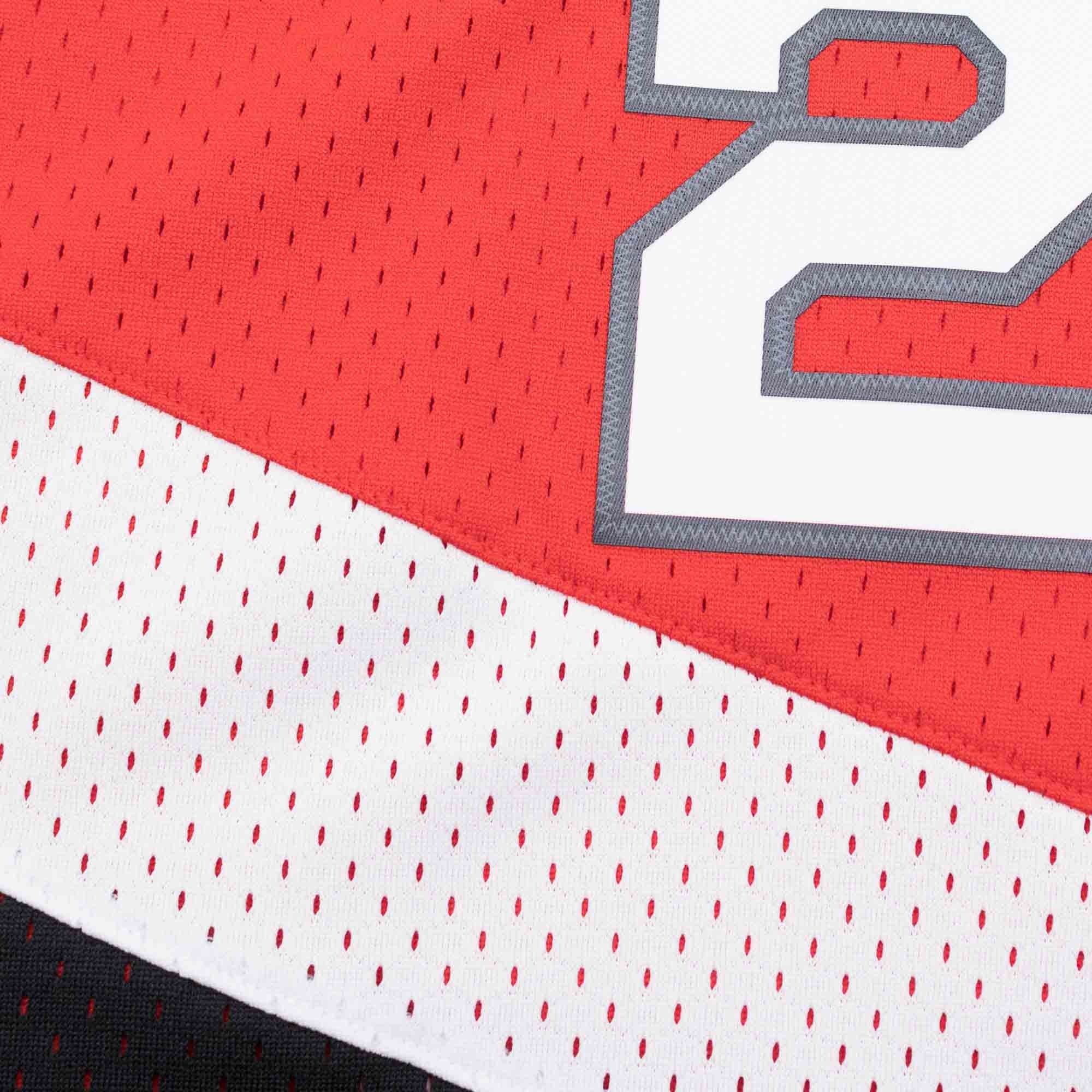 Swingman NBA-Trikot im Design der Portland Trail Blazers aus der Saison 1983-84. Das Trikotdesign entspricht den Trikots der NBA-Profis aus dieser Ära. Alle Logos, Buchstaben und Zahlen sind als hochwertig bedruckter Webepatch im Thermodruckverfahren aufgebracht. Das Mitchell & Ness Hardwood Classics Label am Saum ist ebenso aufgenäht.