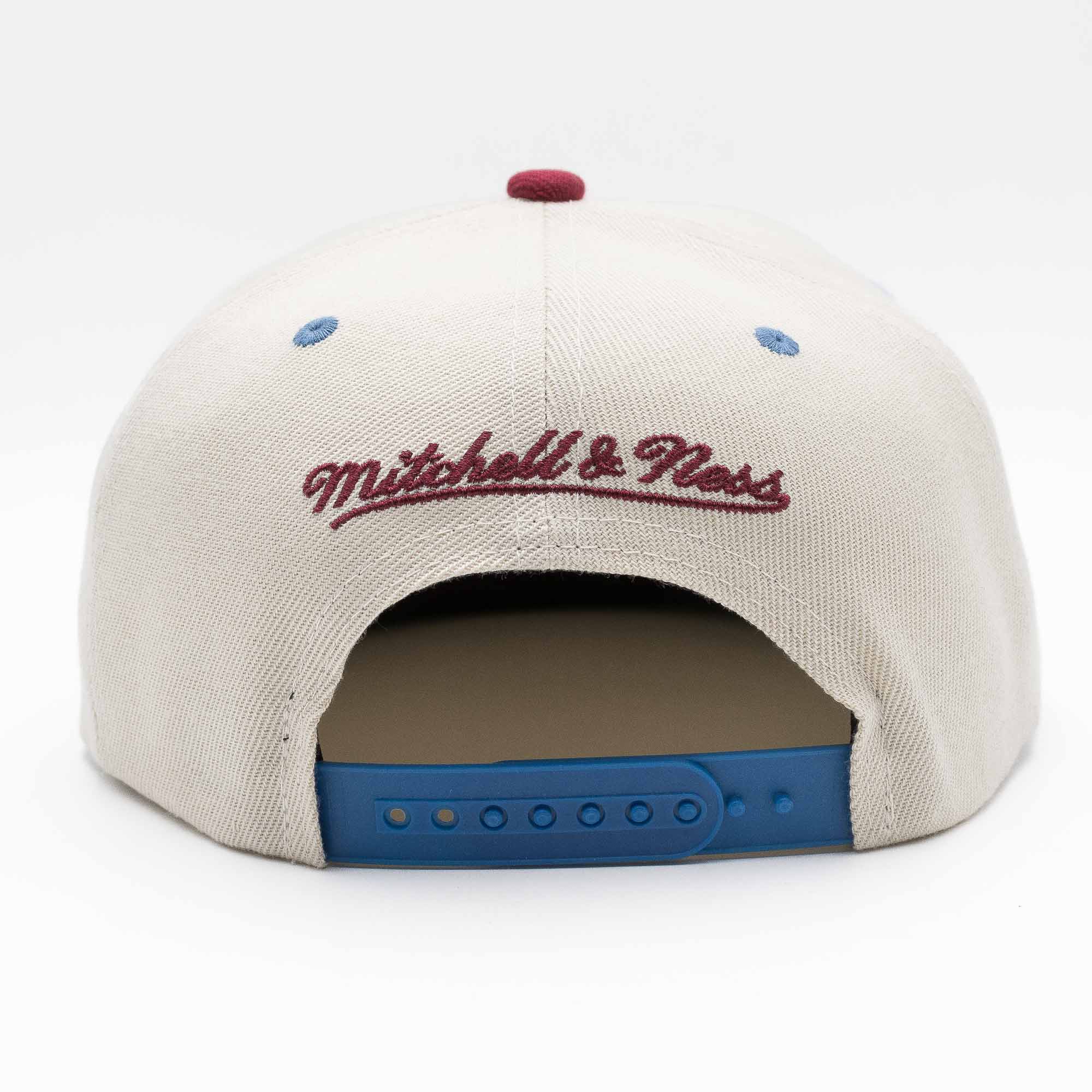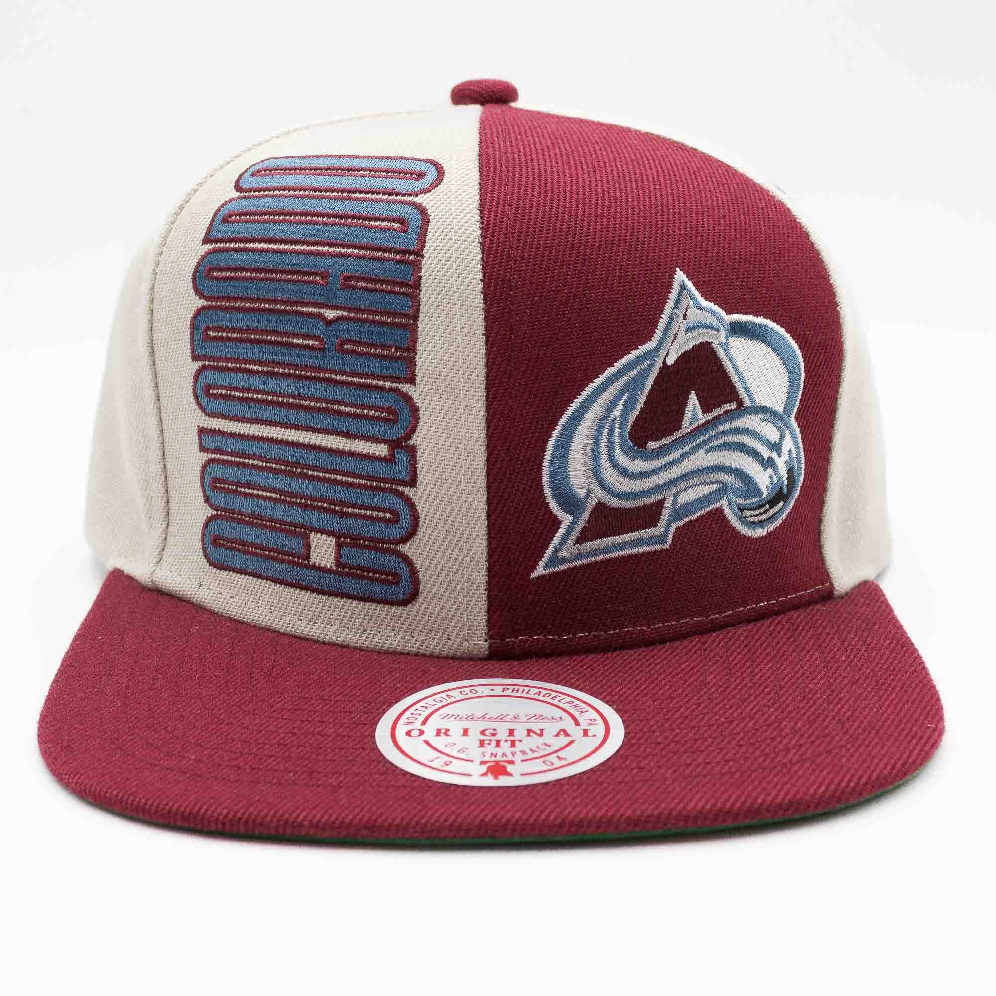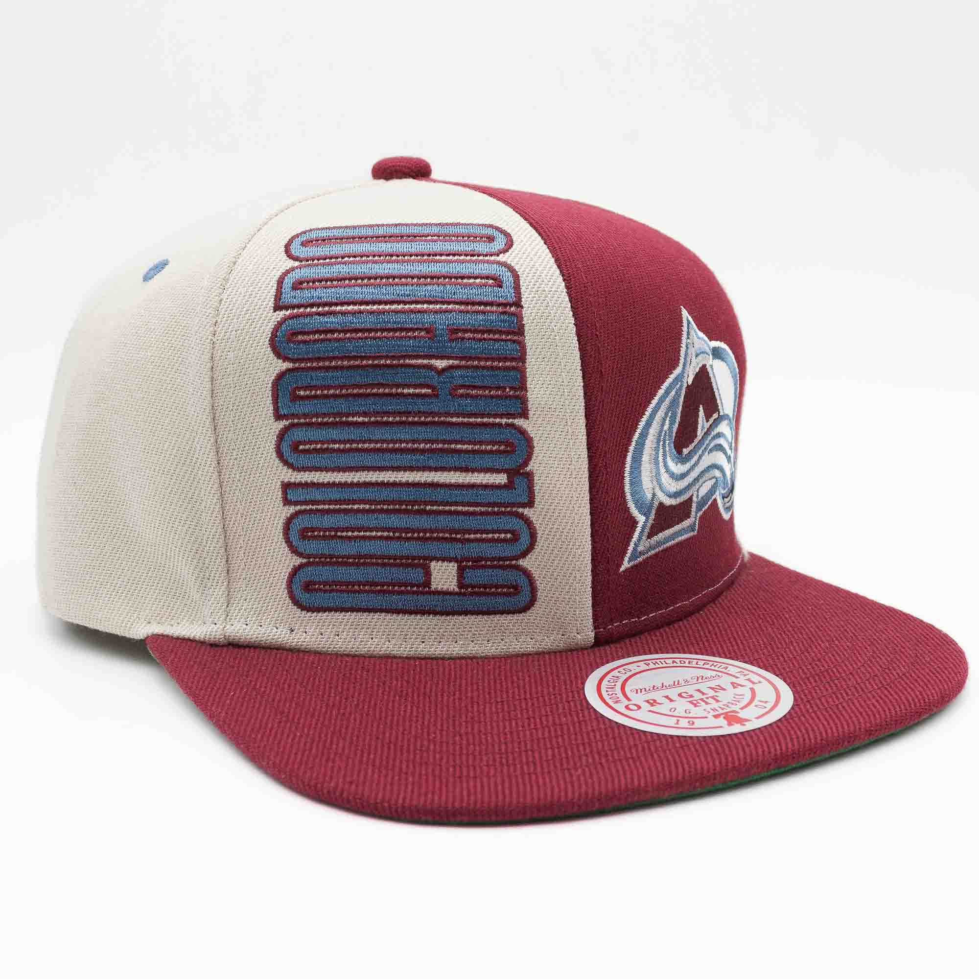 Mitchell & Ness NHL Original Fit Eishockey Snapback Cap von den Colorado Avalanche im zweifarbigen Off White Pop Panel Design.