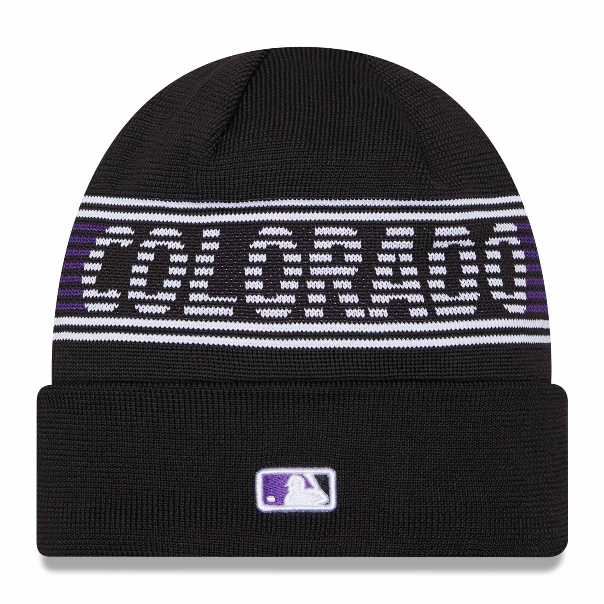 New Era Baseball Beanie Wintermütze von deinen Colorado Rockies aus der offiziellen 2024 MLB Clubhouse Kollektion.