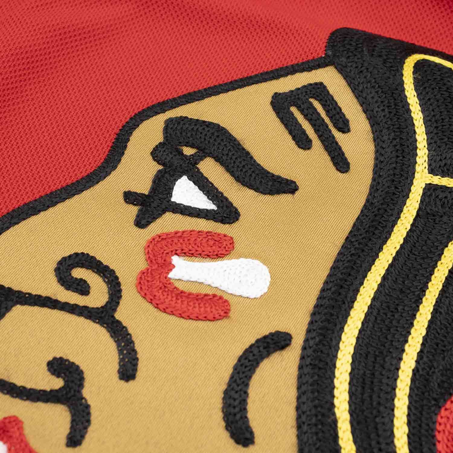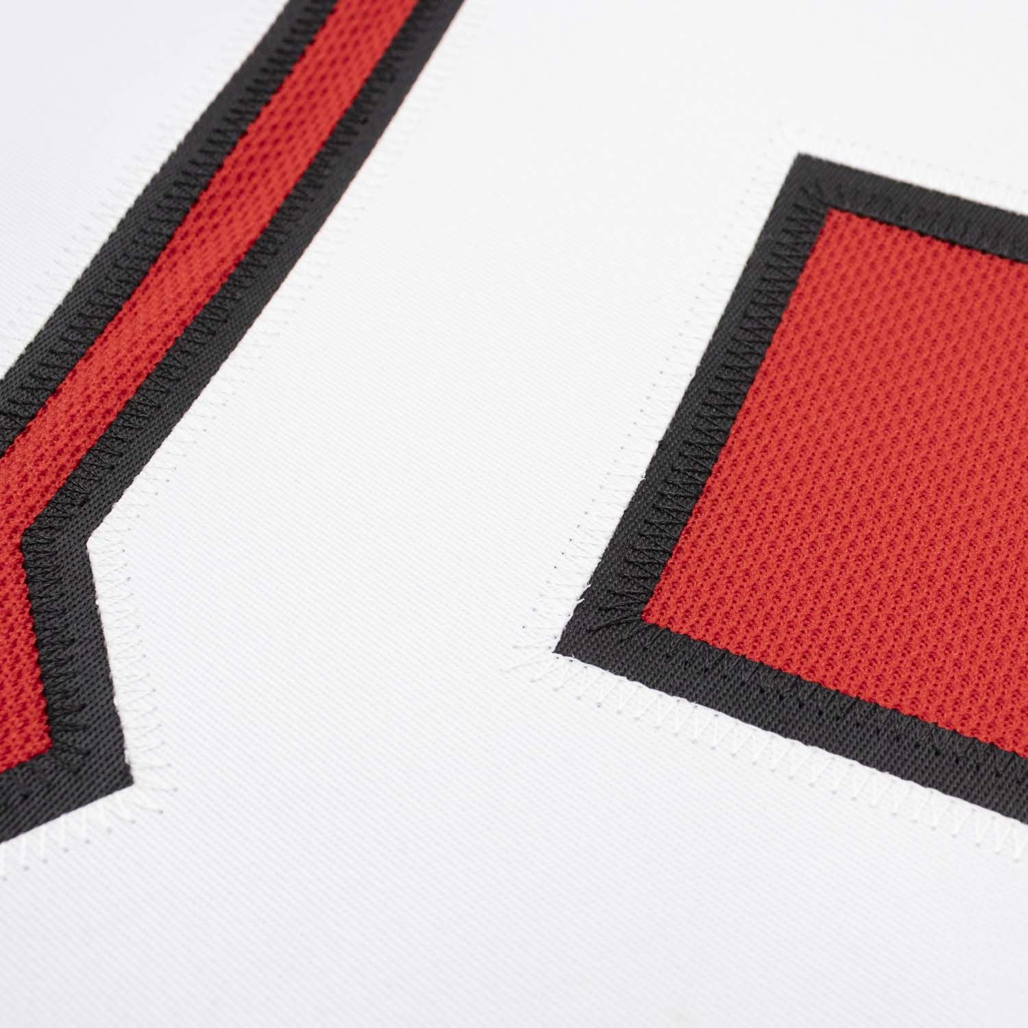 - Name & Number: Aufgestickter Spielername und Nummer im offiziellen NHL-Design, Ziffern mit mehrlagigen Stickungen für besondere Tiefe und Haltbarkeit.