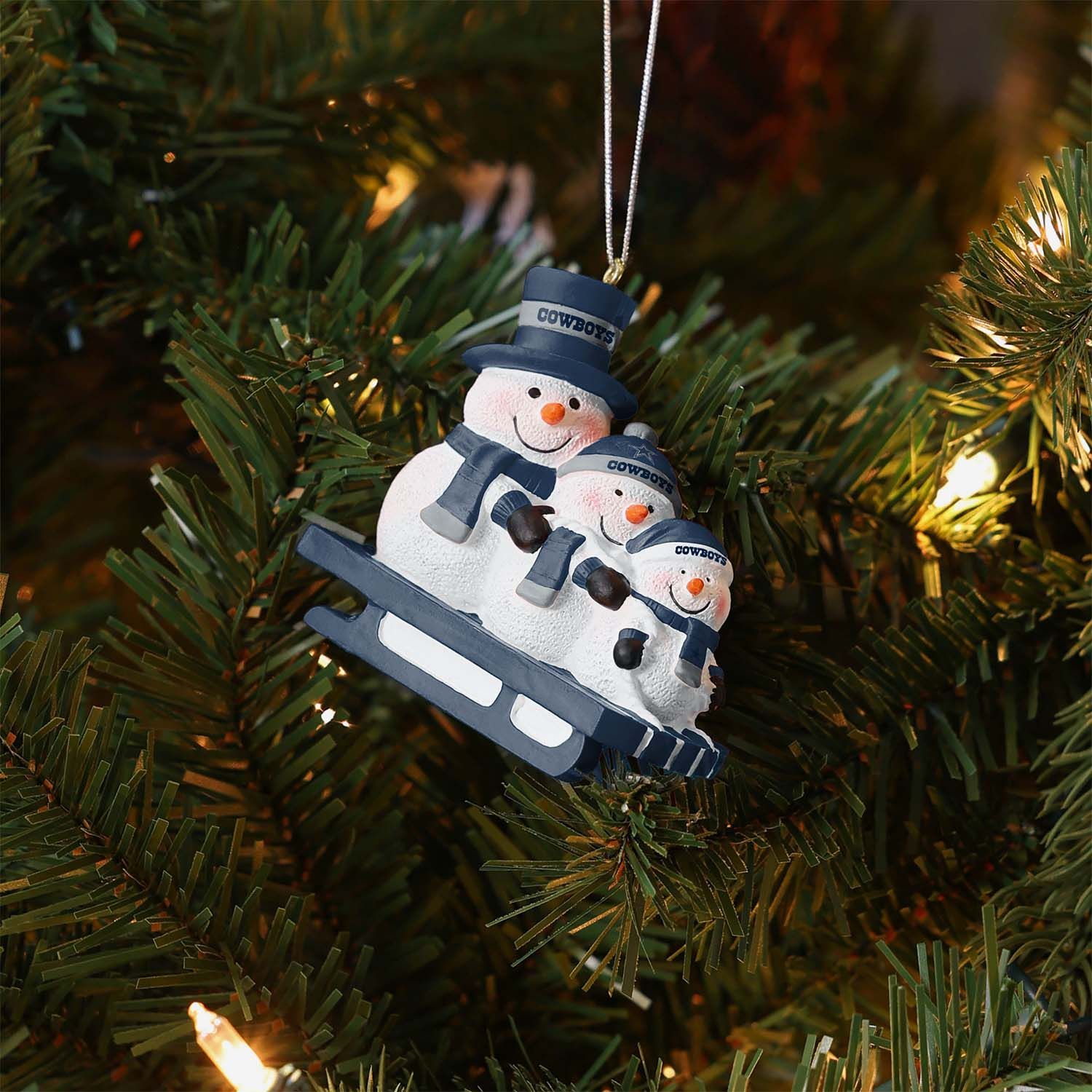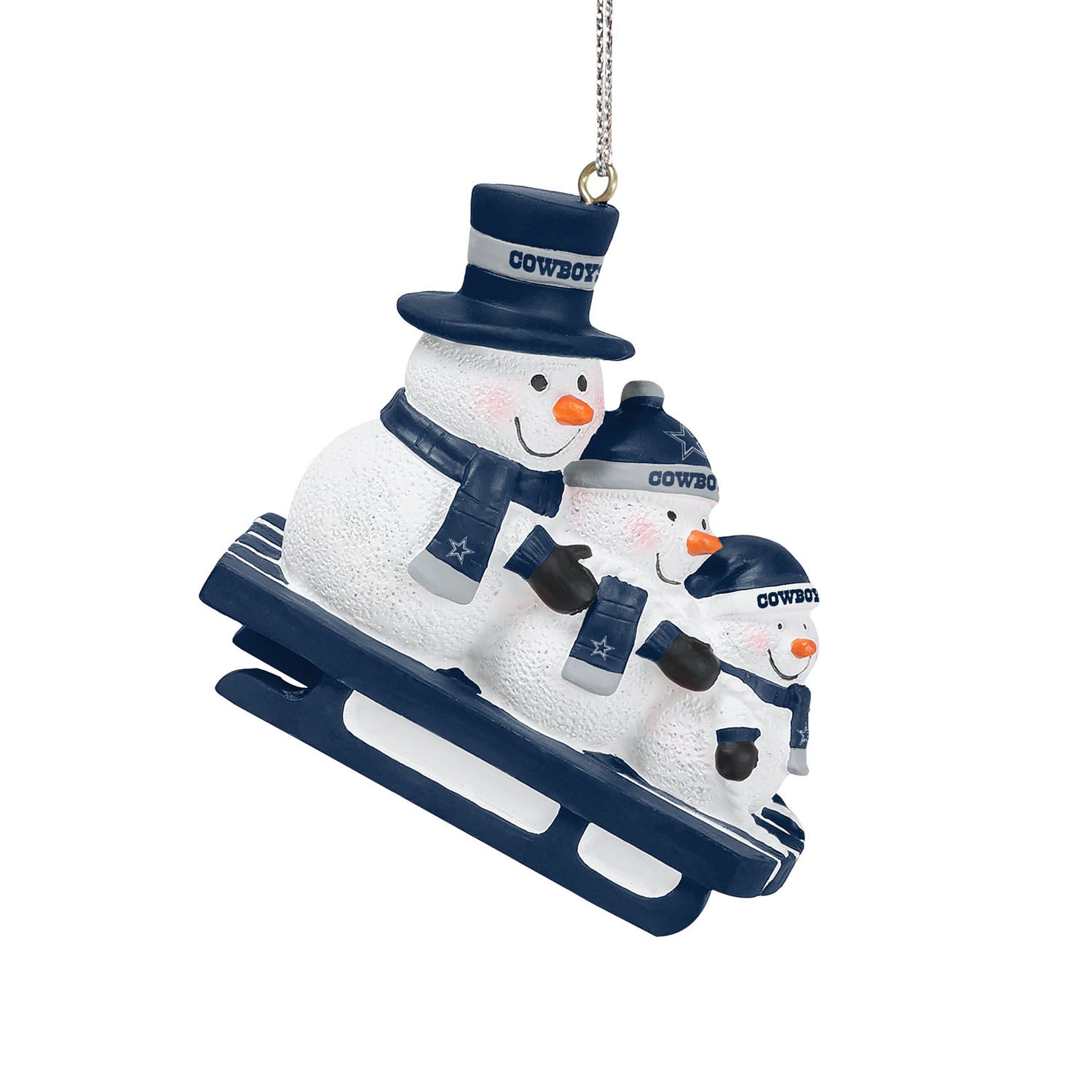 FOCO NFL Christbaumschmuck mit Schneemännern auf einem Schlitten von deinen Dallas Cowboys passend für jeden Weihnachtsbaum.