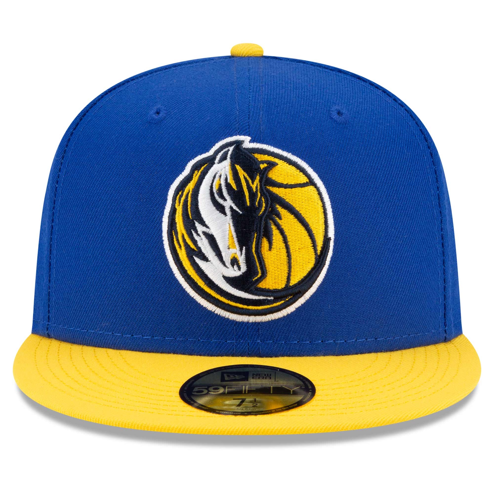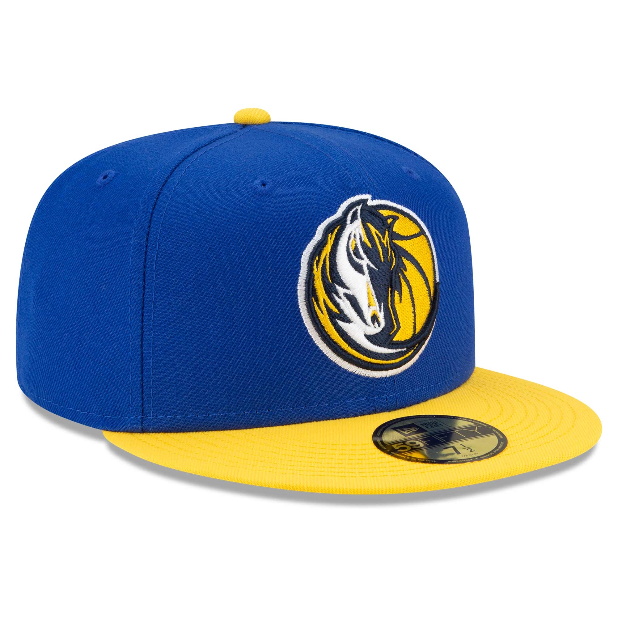 New Era Basketball 59FIFTY Fitted Cap von deinen Dallas Mavericks aus der 2021 NBA Flash Kollektion im Blau-Gelben Colorpack Design.
