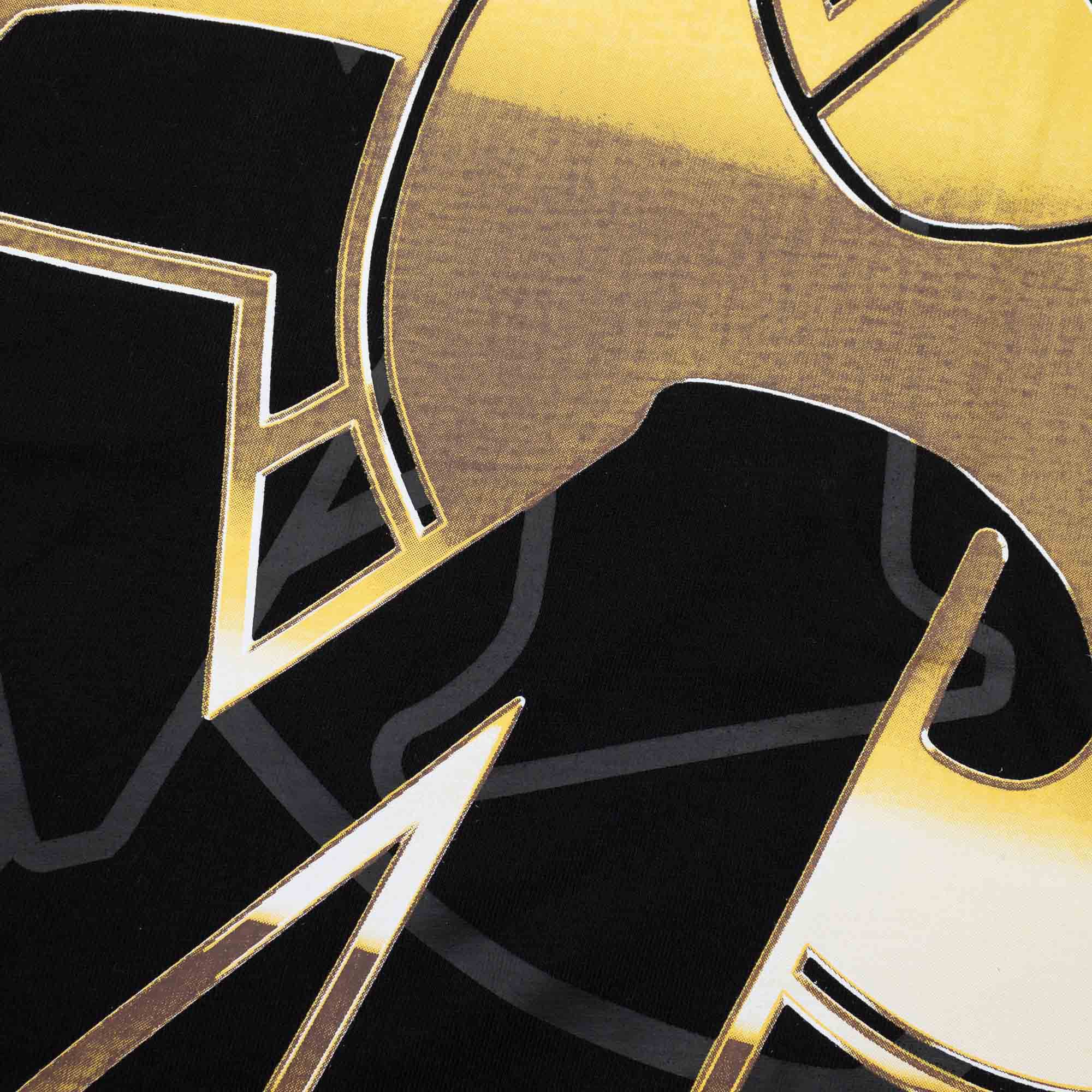 Mitchell and Ness Premium Basketball T-Shirt aus 100% extra schwerer Baumwolle (290 g/m²). Die hochwertige Verarbeitung und das Premium Material erinnern an die guten alten Zeiten, als Kleidungsstücke noch eine lange Haltbarkeit gewährleisten mussten. Die Vorderseite des NBA Tees ist mit dem übergroßen Big Face 4.0 Dallas Mavericks Teamlogo in Gold dekoriert. Mit dem schwarz-goldenen Design und dem aufgenähten Hardwood Classics Mitchell & Ness Label am Saum überzeugt das NBA Tee auch modisch jeden Basketball Fan. Klassischer, weiter Mitchell & Ness Unisex Relaxed Fit mit Rundhalsausschnitt für eine absolut entspannte Passform. Abgerundet wird das Design mit dem gestickten Mitchell & Ness Wordmark am rechten Ärmel.