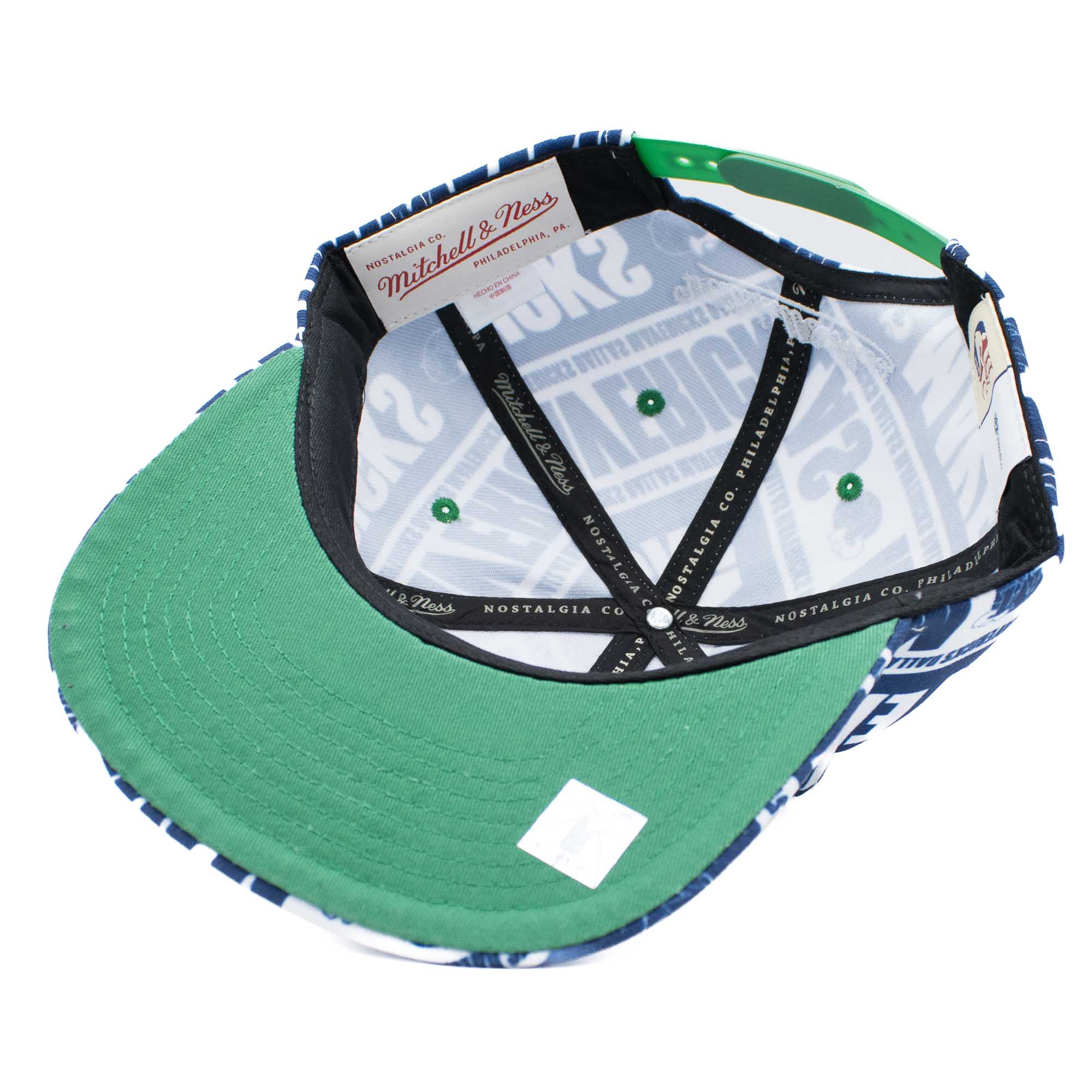 Zeige deine wahre Passion mit der Meat Paper Cap von Mitchell & Ness. Die Vorderseite der Snapback ist mit dem Retro Dallas Mavericks Teamlogo bestickt. Als besonderes Extra ist die gesamte Cap mit Teamlogos und Teamnamen überzogen. Die Rückseite ist mit dem Mitchell & Ness Schriftzug bestickt. Die Schirmunterseite ist klassisch grün.