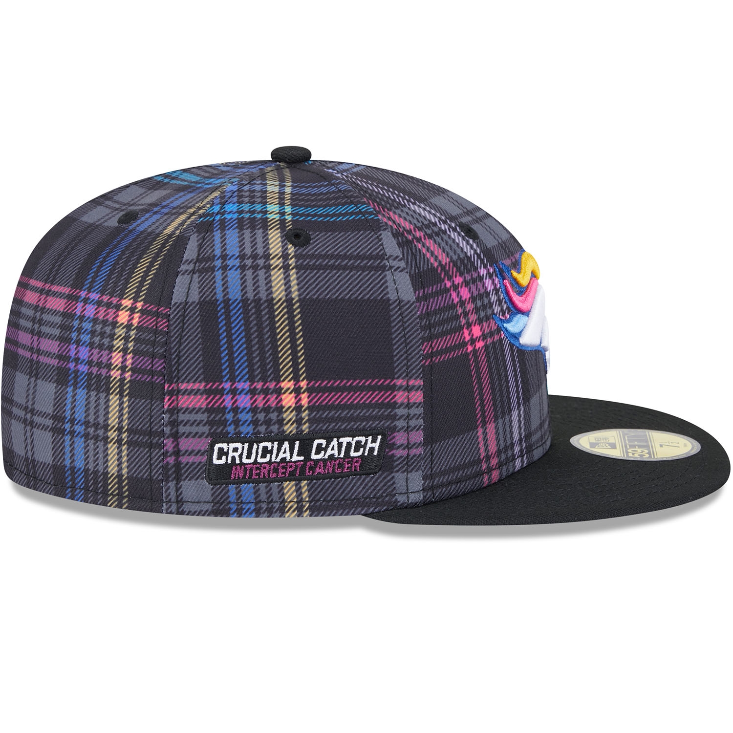 Unterstütze den weltweiten Kampf gegen Krebs mit der offiziellen New Era 2024 NFL Crucial Catch On-Field Kappe. Diese geschlossene NFL Cap wird während der 2024-25 Crucial Catch Kampagne im Oktober an den NFL-Seitenlinien getragen. Die Cap ist auf der Vorderseite hochwertig mit dem bunt abgesetzten Denver Broncos Teamlogo bestickt. Die rechte Capseite ist mit dem CRUCIAL CATCH - INTERCEPT CANCER Patch bestickt. Die Rückseite ziert das aufgestickte NFL Logo. Das Sublimierte Karo-Design auf allen sechs Panels in den typischen Crucial Catch Farben sorgt für einen einzigartigen Look.