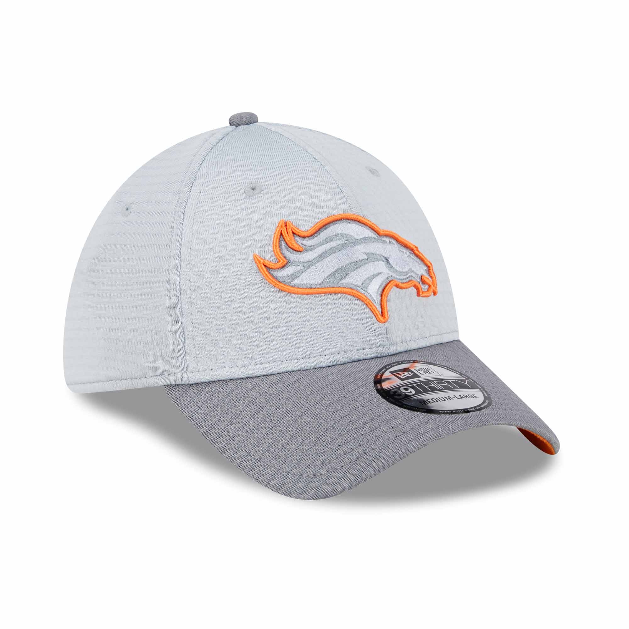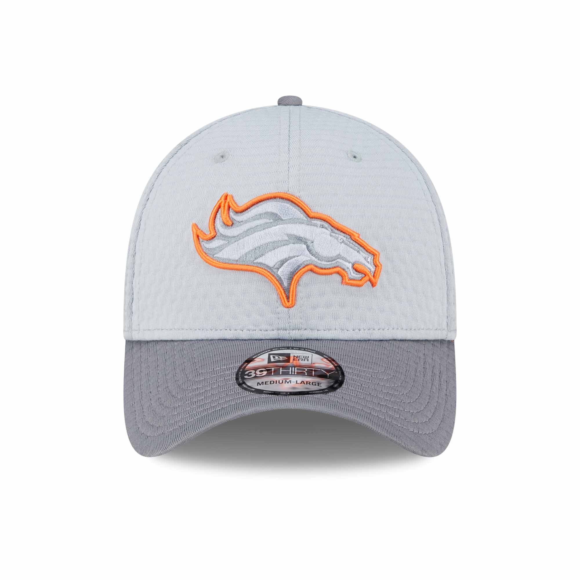 New Era American Football Cap deiner Denver Broncos im Stretch-Fit 39THIRTY Style aus der offiziellen 2024 NFL Training Camp Kollektion.