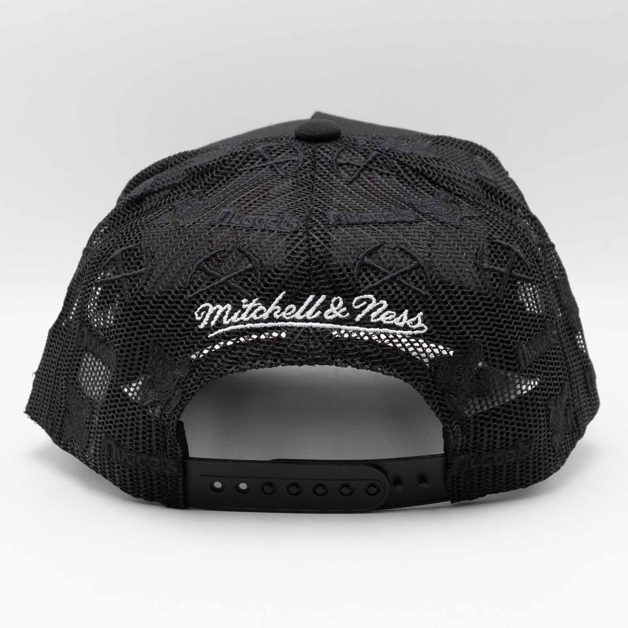 Mitchell & Ness Adjustable Fit Trucker Snapback mit gebogenem (curved) Schirm und hoher, fester Krone. Für mehr Atmungsaktivität sorgt das Trucker Meshback; das innenseitige Schweißband erhöht den Tragekomfort.