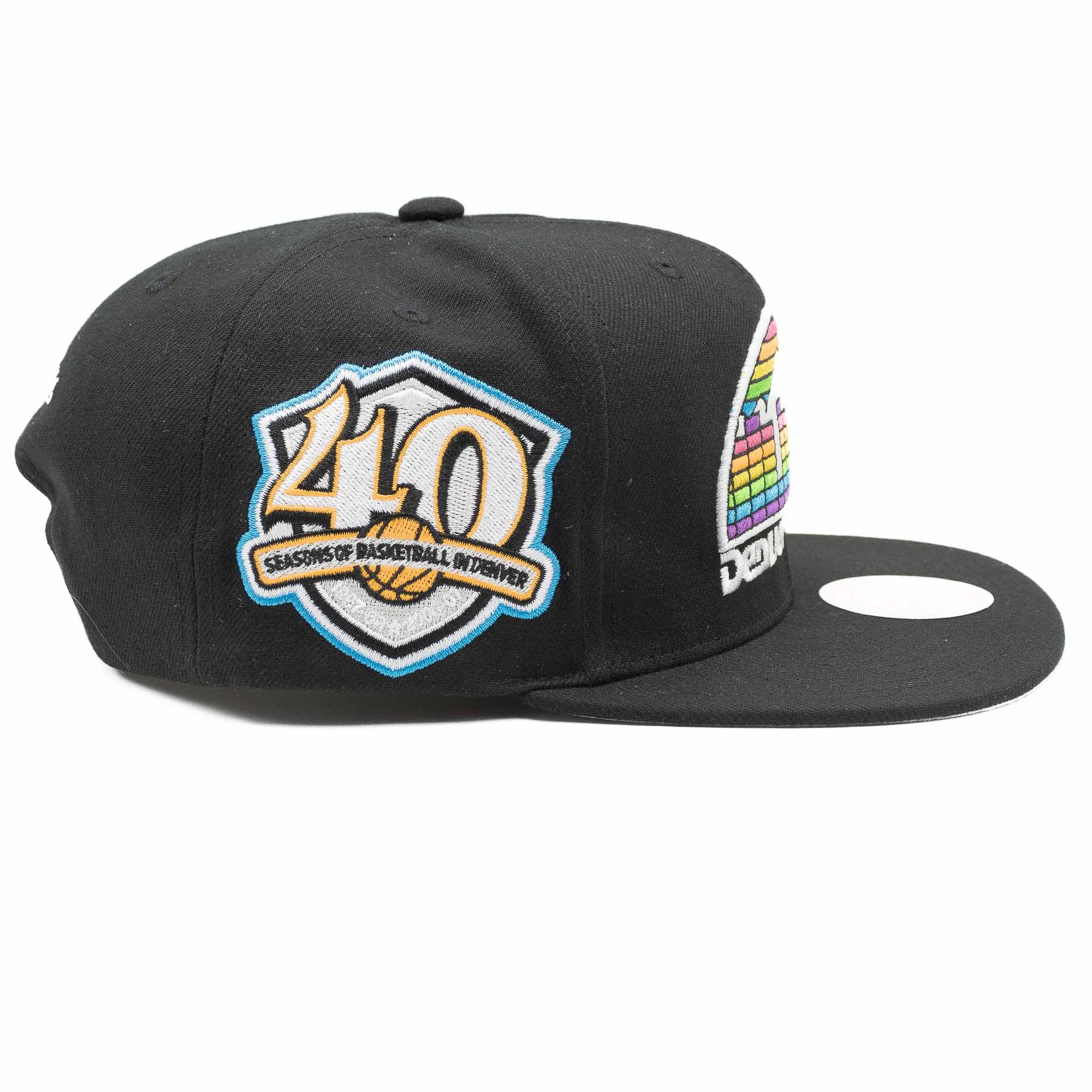 Mitchell & Ness NBA Original Fit Basketball Snapback Cap von deinen Denver Nuggets im Neon Tropical Style mit 40 Years Side Patch.