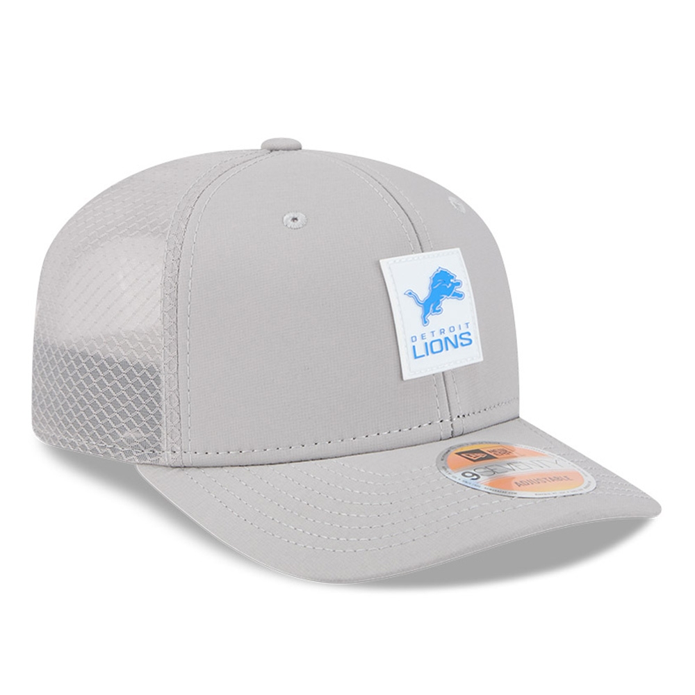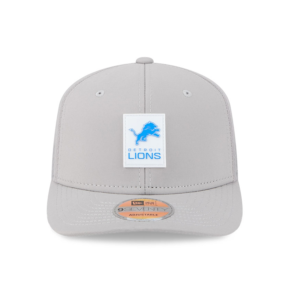 Detroit Lions 2025 NFL On-Field Sideline 9SEVENTY Trucker Snapback Cap CW Grau