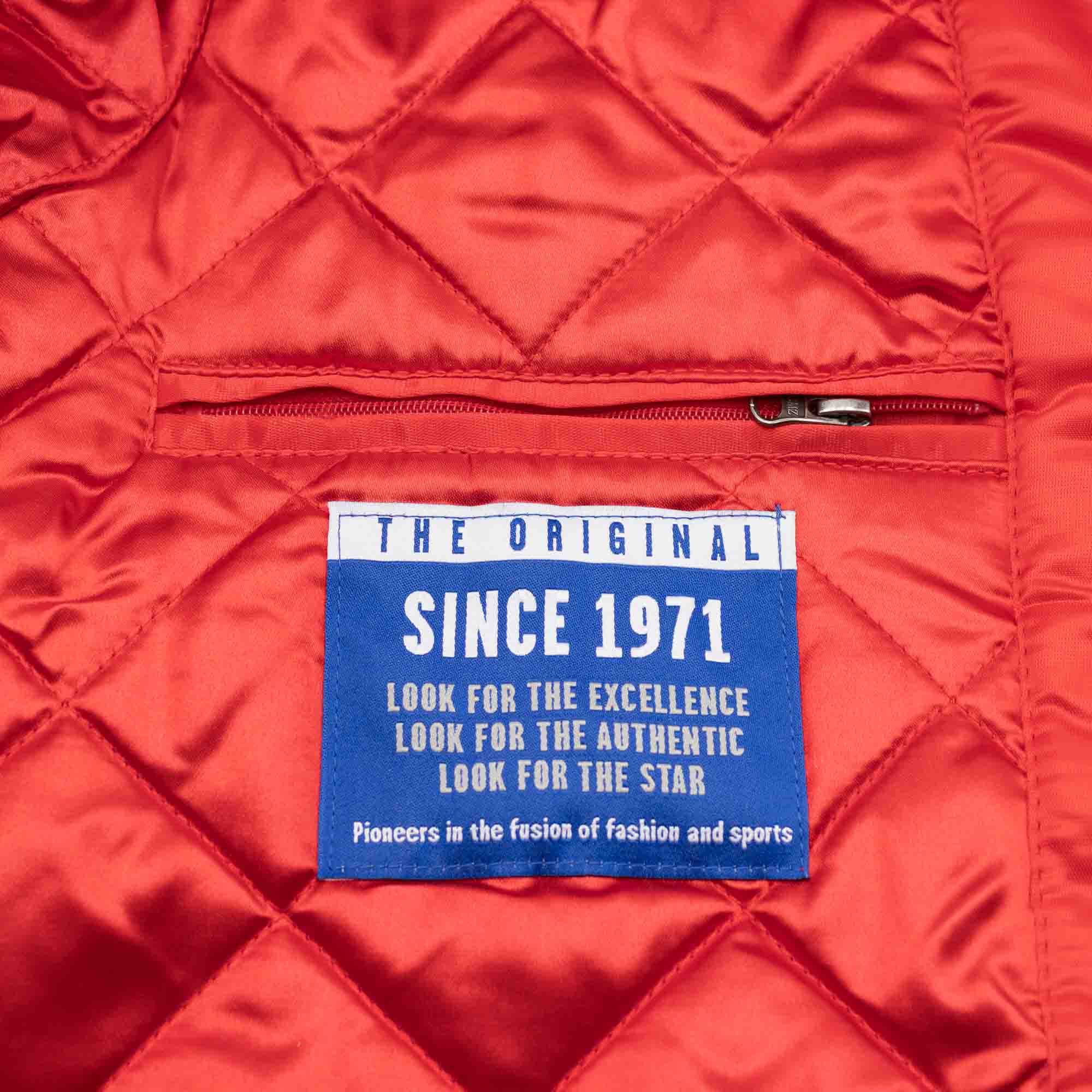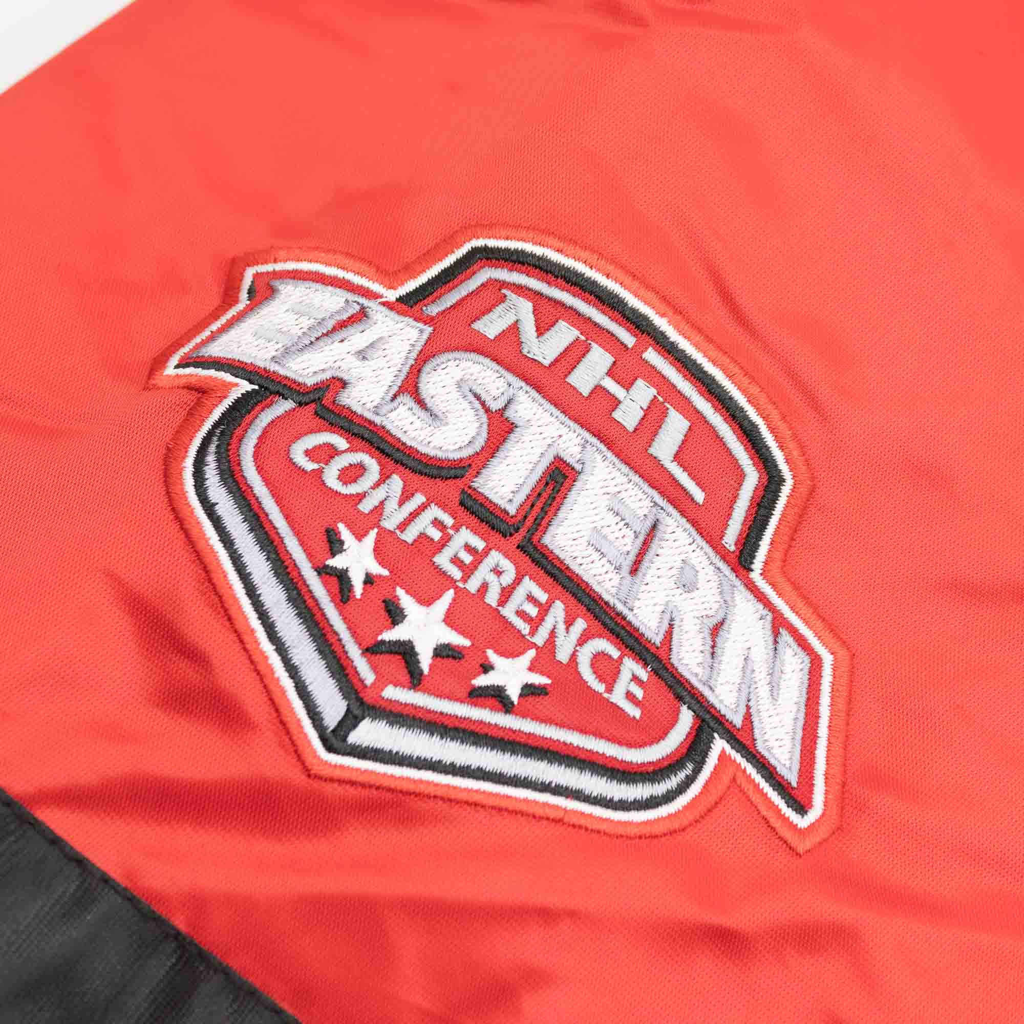 Diese Starter Varsity Satin Jacket kommt im modernen US-Sportdesign und überzeugt mit den komplett aufgestickten Teamapplikationen und den farblich abgesetzten Streifen auf den Schultern. Die Front der Jacke prägt der große Detroit Red Wings Team-Schriftzug, die Rückseite ziert das übergroße Teamlogo. Abgerundet wird das einmalige Starter-Design mit dem Conference Logo auf dem rechten Ärmel. Das legendäre Starter Logo befindet sich auf dem linken Ärmel als hochwertiger Stick, sowie im Kragen und auf der Innentasche als aufgenähtes Label.