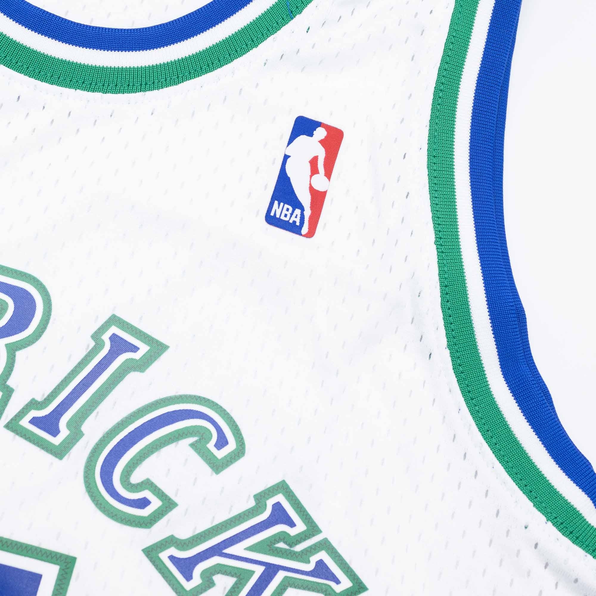 Klassisches Swingman NBA-Trikot im Design der Dallas Mavericks aus der Saison 1998-99. Das Trikotdesign entspricht den originalen Trikots der NBA-Profis aus dieser Ära. Alle Logos, Buchstaben und Zahlen sind als hochwertig bedruckter Webepatch im Thermodruckverfahren aufgebracht. Das Mitchell & Ness Hardwood Classics Label am Saum ist aufgenäht. Die Mitchell & Ness NBA Trikots aus der Swingman Collection sind ein Must-Have für jeden Basketball Fan und eine Erinnerung an die besten Spieler und Legenden dieses Sports wie Dirk Nowitzki.