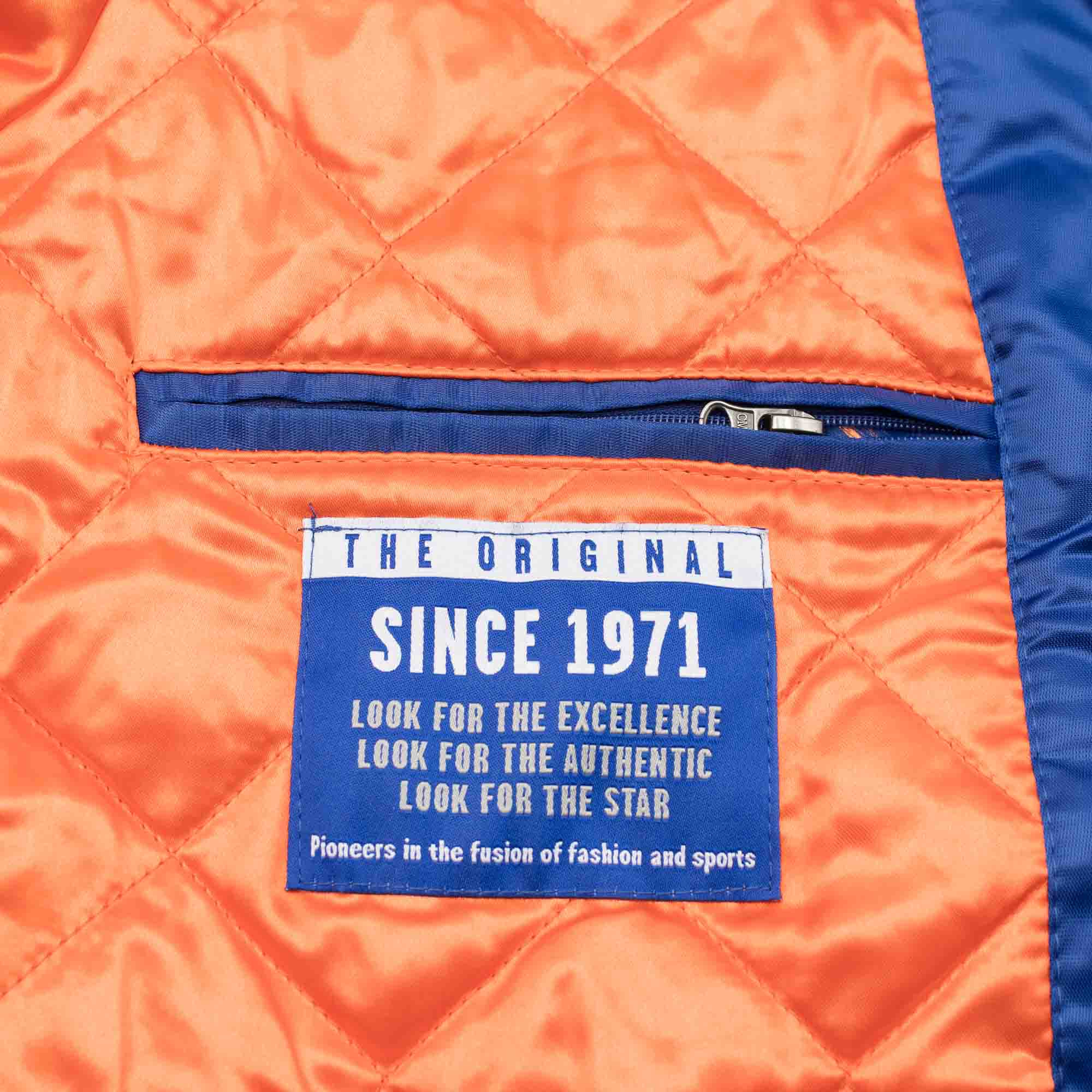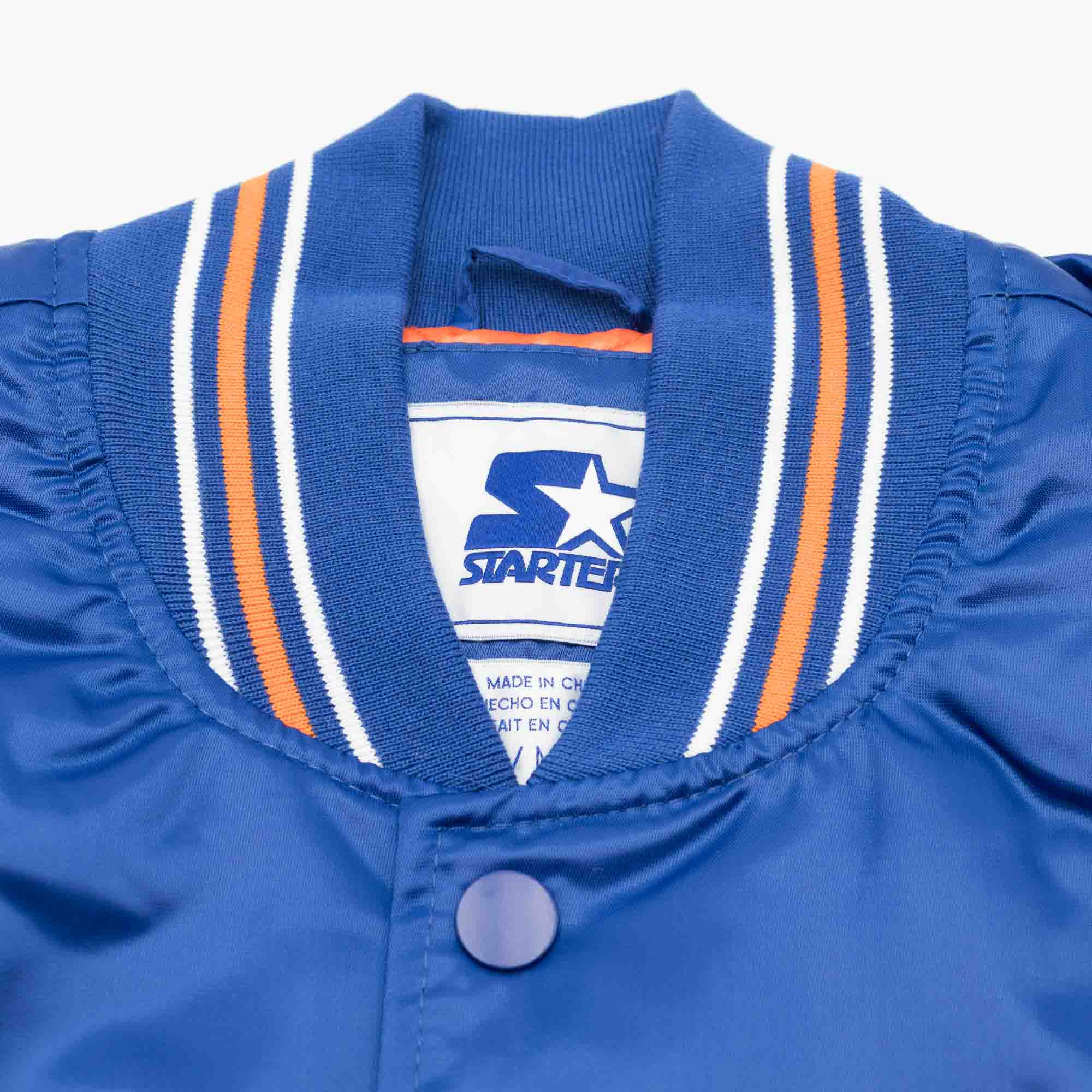 Mit der Enforcer Starter Varsity Satin Jacket sorgst du für eindeutigen Oilers Team-Support. Mit den komplett aufgestickten Teamapplikationen und den farblich abgesetzten Ärmeln ist die Jacke ein echter Hingucker. Auf der linken Brust ist das Edmonton Oilers Teamlogo hochwertig aufgestickt. Abgerundet wird das einmalige Starter-Design mit dem offiziellen NHL Shield in den Teamfarben auf dem rechten Ärmel. Das legendäre Starter Logo befindet sich auf dem linken Ärmel als hochwertiger Stick, sowie im Kragen und auf der Innentasche als aufgenähtes Label.