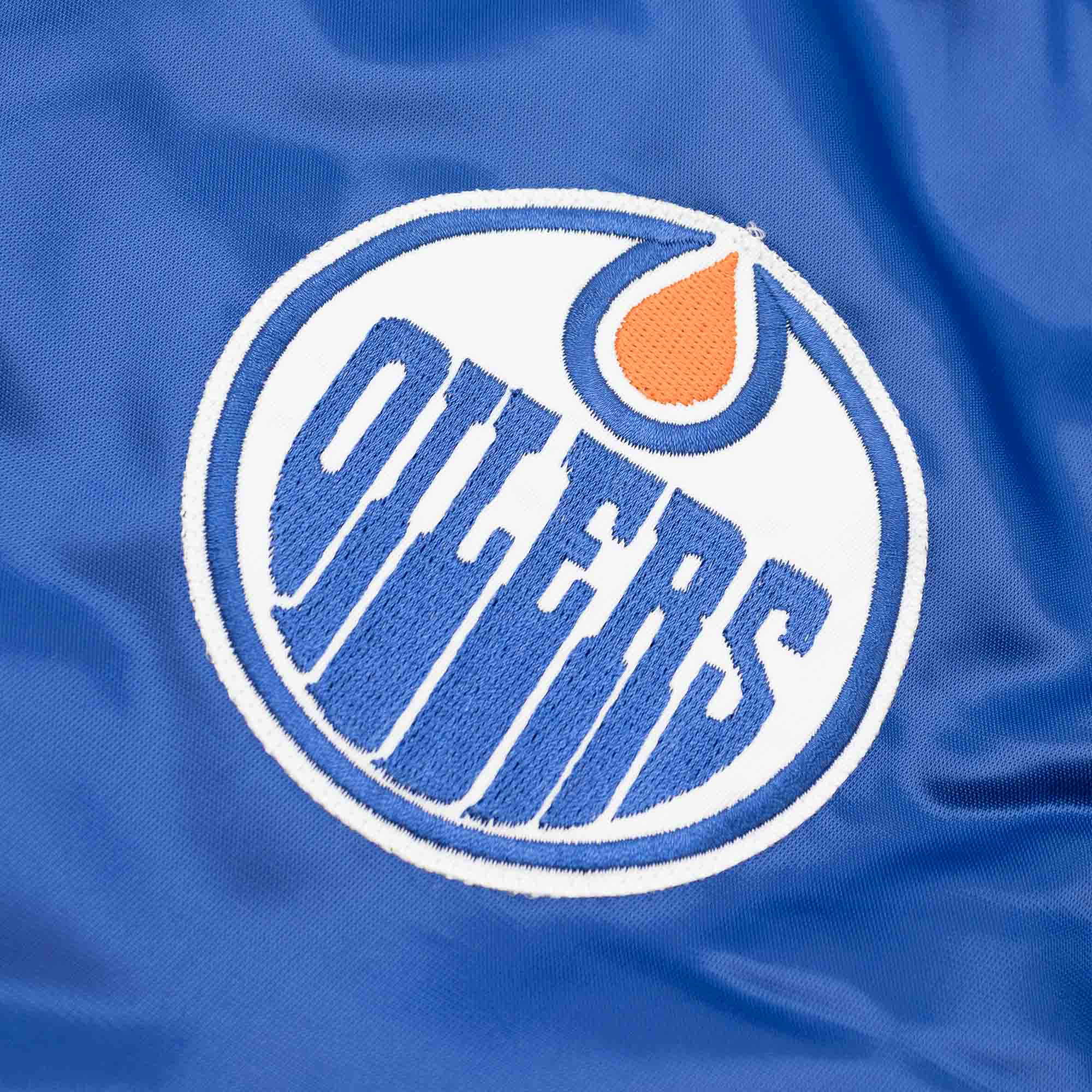 Starter NHL Herren Varsity Satin Jacke im zweifarbigen Enforcer Style deiner Edmonton Oilers.