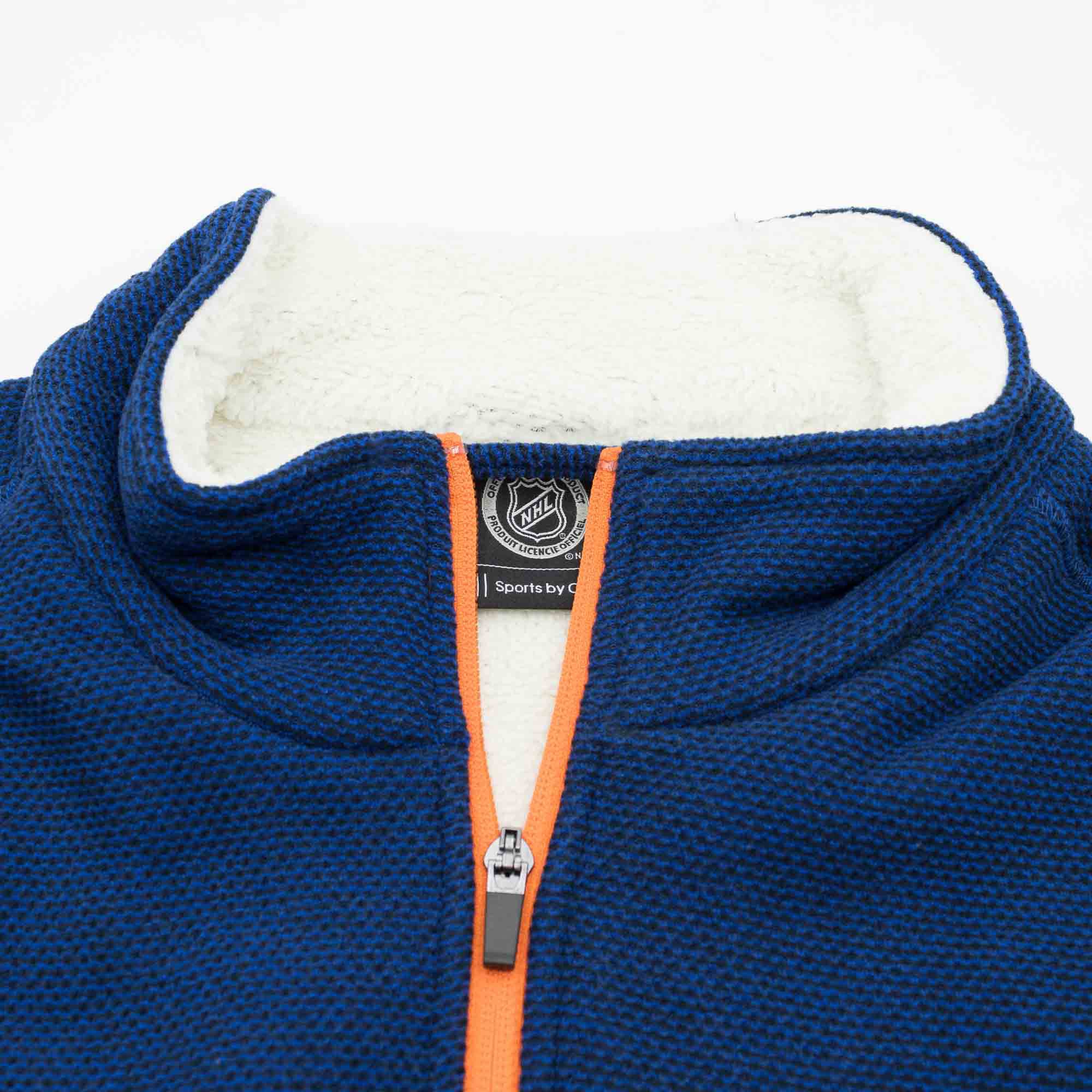 Die kuschelige NHL Sherpa Jacke von G-III ist ein Must-Have für die Übergangszeit im Herbst und Frühling. Die Edmonton Oilers Jacke überzeugt mit dem modischen Jacquard-Jersey Außenmaterial. Für den optimalen Team-Support ist das Edmonton Oilers Teamlogo auf der linken Brust aufgestickt, zusätzlich ist der durchgehende Reißverschluss in der offiziellen Teamfarbe gestaltet. Innen sorgt das klassische Sherpa-Futter für ein gemütliches Tragegefühl.