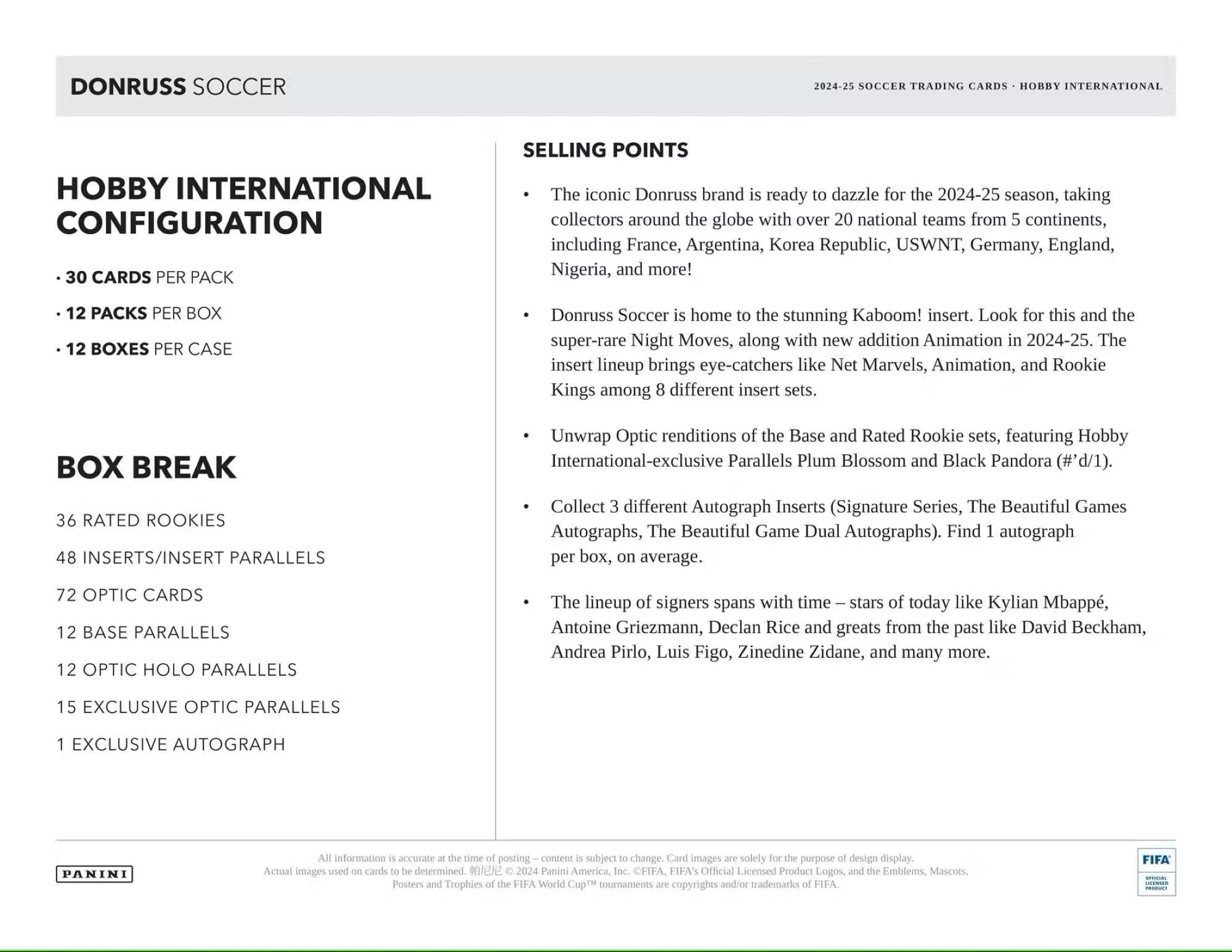 The iconic Donruss brand is ready to dazzle for the 2024-25 season, taking collectors around the globe with over 20 national teams from 5 continents, including France, Argentina, Korea Republic, USWNT, Germany, England, Nigeria, and more!