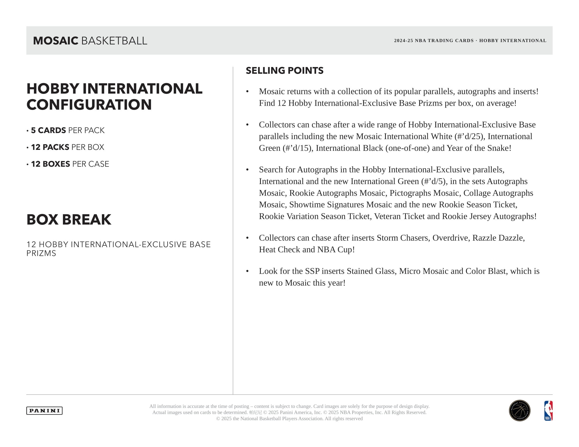 2024/25 Panini Mosaic Basketball NBA International Hobby Box