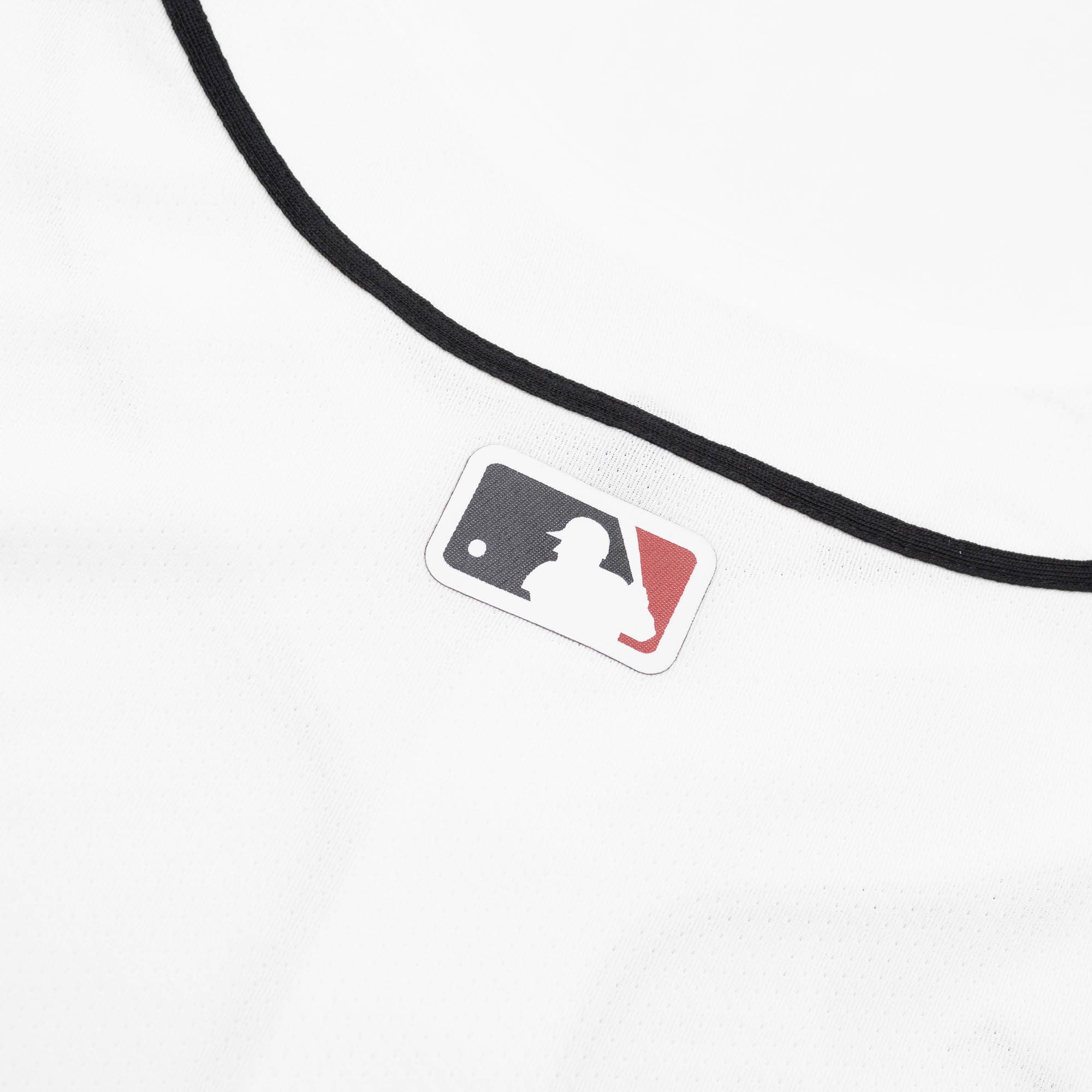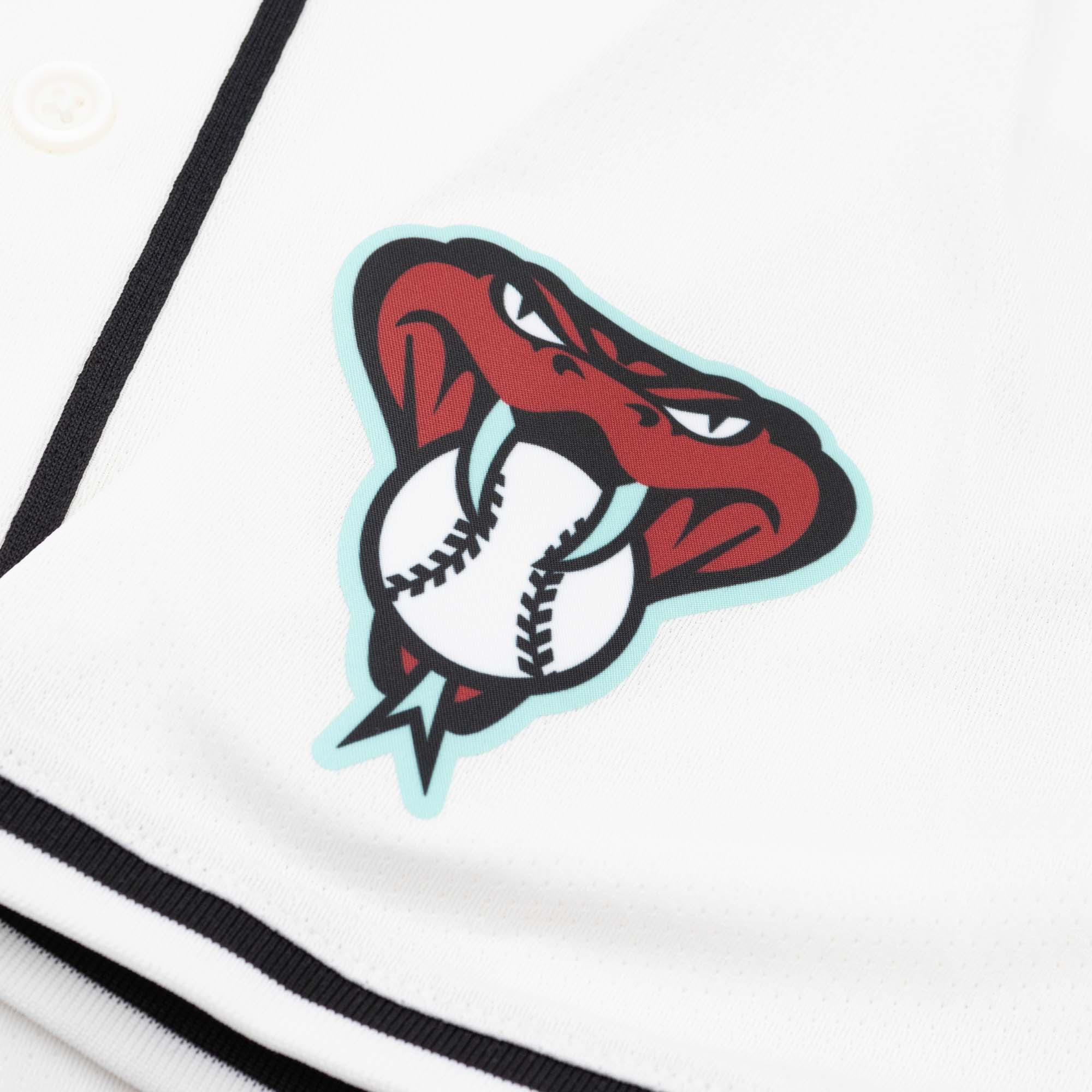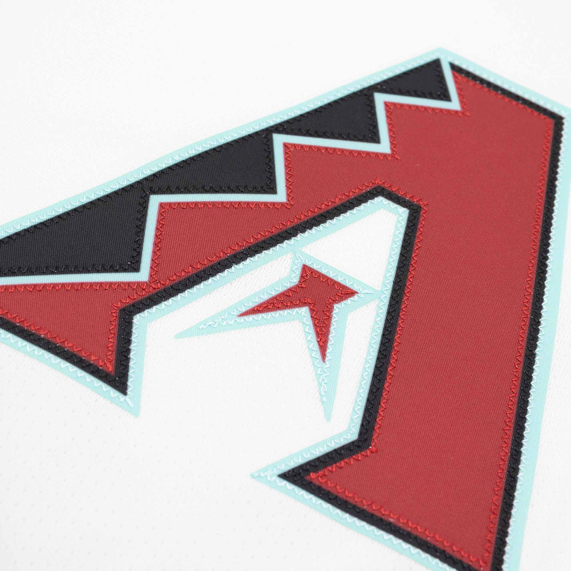 Inspired by the on-field uniforms of your favorite MLB squad, this Arizona Diamondbacks Jersey delivers an authentic look with twill details. The sweat-wicking, double-knit mesh fabric helps provide a breathable, comfortable feel on game day. Official heat-sealed twill Arizona Diamondbacks logo with zigzag stitching on front. Embroidered Nike Swoosh logo. Sublimated team logo sleeve patch. Heat-applied woven MLB Batterman on back and Nike jock tag at front hem.