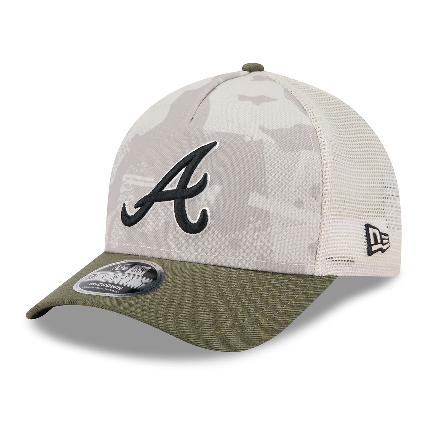 New Era Official 2025 MLB Armed Forces Day Campaign 9FORTY M-Crown A-Frame Snapback Trucker Hat from your Atlanta Braves.