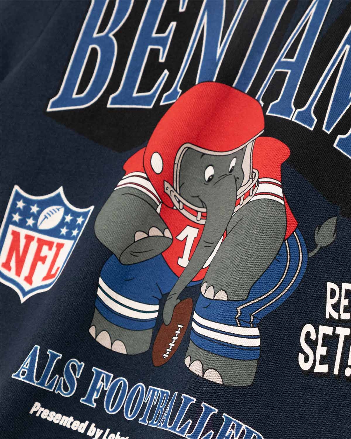 Benjamin Blümchen meets the NFL - now for young football fans: The Lobster & Lemonade NFL Kids T-Shirt brings the beloved elephant into the world of American football. With its relaxed Park Fit, it offers a comfortable fit and high wearing comfort - perfect for play, sports, and everyday adventures.
