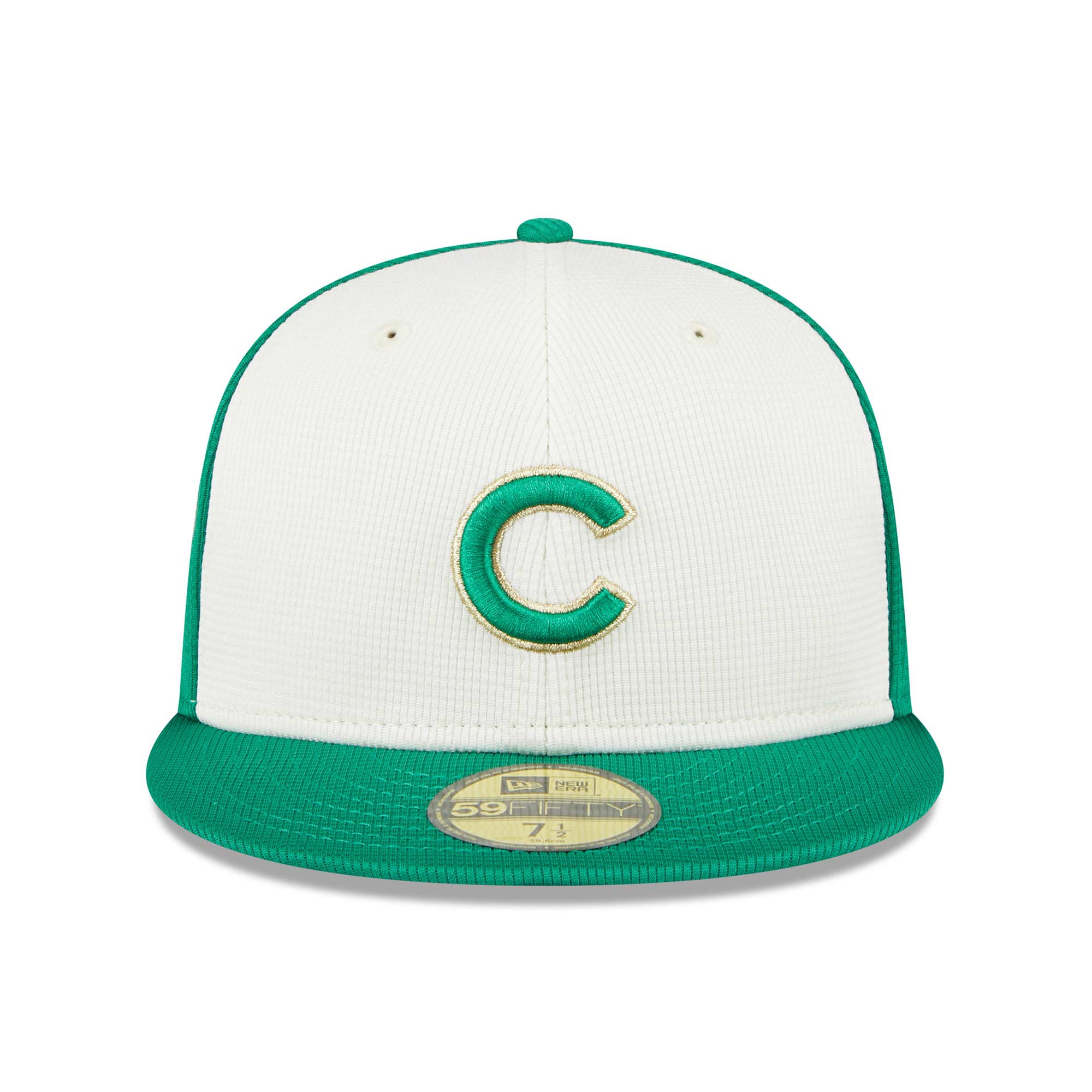 New Era MLB Official 2024 St. Patrick's Day Collection 59FIFTY Fitted Baseball Hat from your Chicago Cubs.