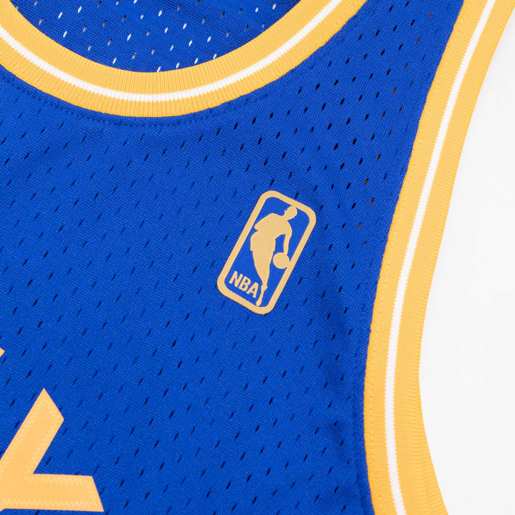 Rep your favorite team and player anytime in the NBA Swingman Hardwood Classics Jersey, replicating what the Golden State Warriors have worn on the court during that era. With heat seal screen printed twill logo, name and number applications. The body is made from 100% polyester mesh. Woven Hardwood Classics-Mitchell & Ness jocktag at front lower left.