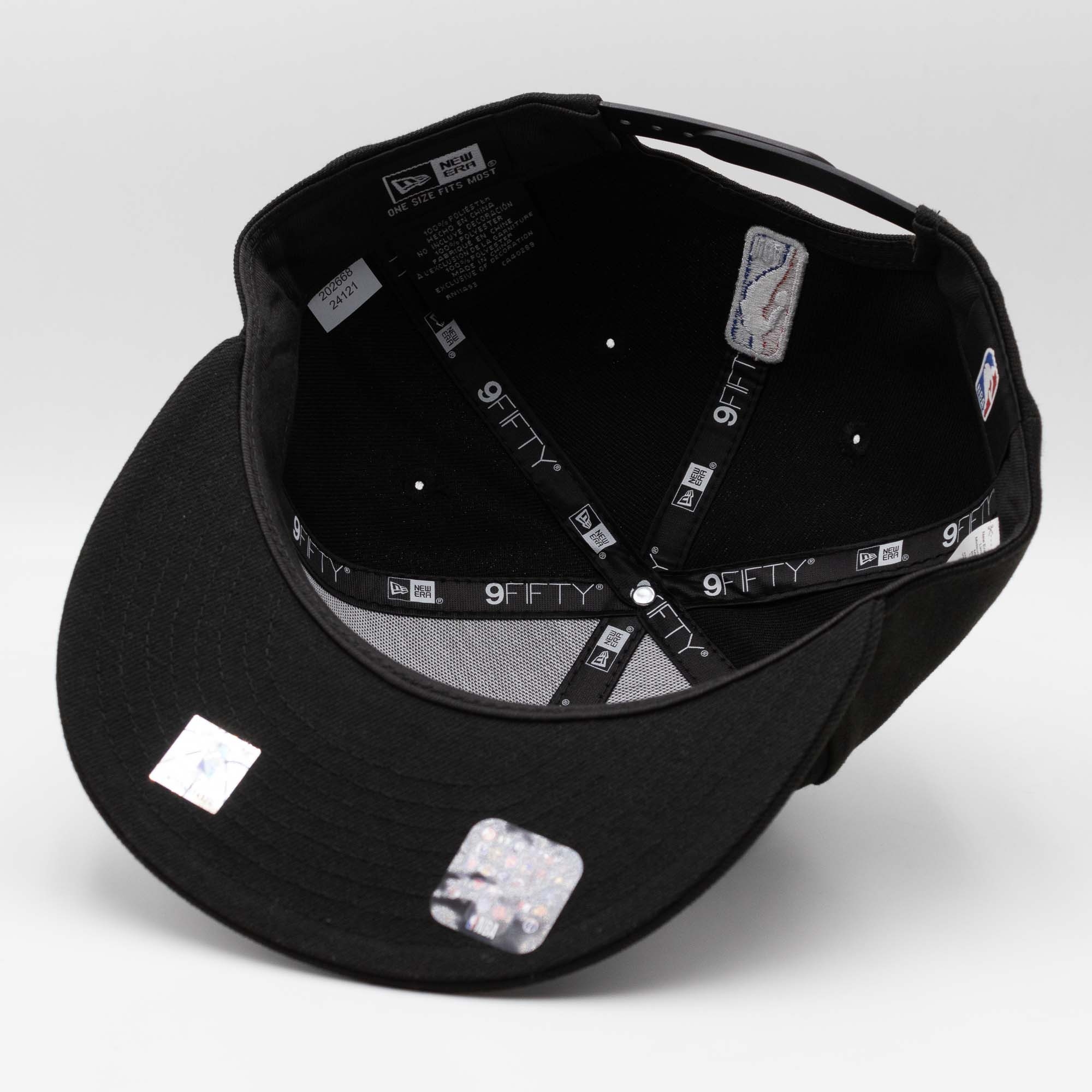 Classic 9FIFTY profile with a high structured crown and flat visor. New Era logo embroidered on left side. Stitched eyelets for breathability. Interior includes branded taping as well as a moisture absorbing sweatband. A snapback closure for an adjustable fit.