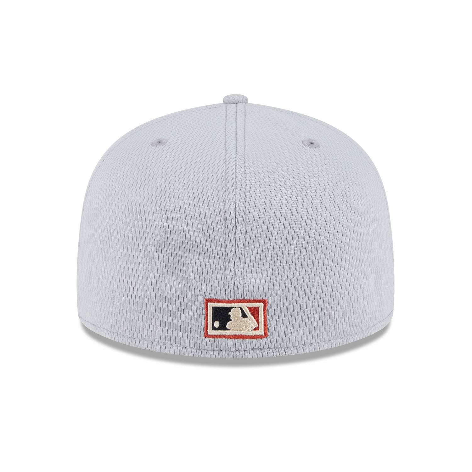 This New Era 59FIFTY Fitted Cap from the MLB Cooperstown Collection is worn by Houston Astros players and staff in the clubhouse environment during the 2025 baseball season. The cap combines modern design with authentic team details. The Dashmark Mesh ensures a lightweight, breathable structure. The embroidered team logo is featured on the front, while the MLB Batterman logo on the back completes the design. A silicone team tag on the right side and a silicone team logo on the undervisor add extra detail.