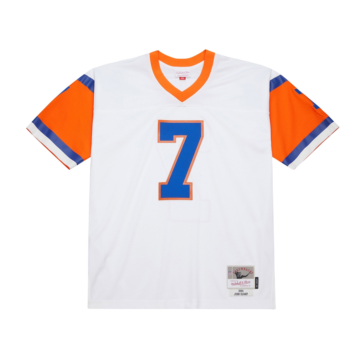 - Twill Appliques: Stitched number 7 on the front, back, and sleeves, plus player name "ELWAY" across the shoulders in iconic Broncos style.