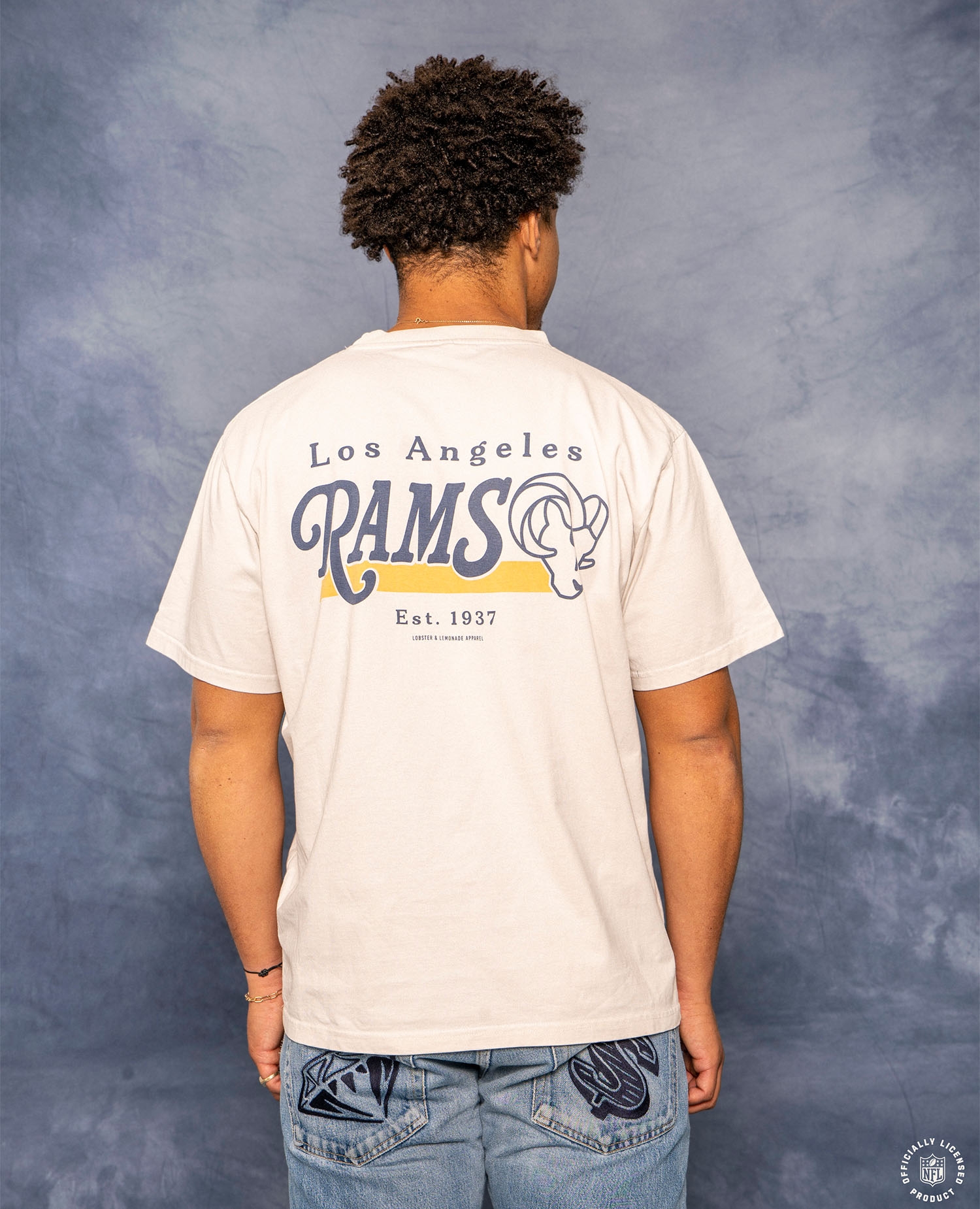 Show your team pride with the Lobster & Lemonade NFL Classics '89 Band T-Shirt of your Los Angeles Rams. This tee combines vintage sports vibes with modern streetwear style and stands out with its boxy cut, washed-out retro look, and premium quality - a must-have for LA fans who want authentic NFL fashion.