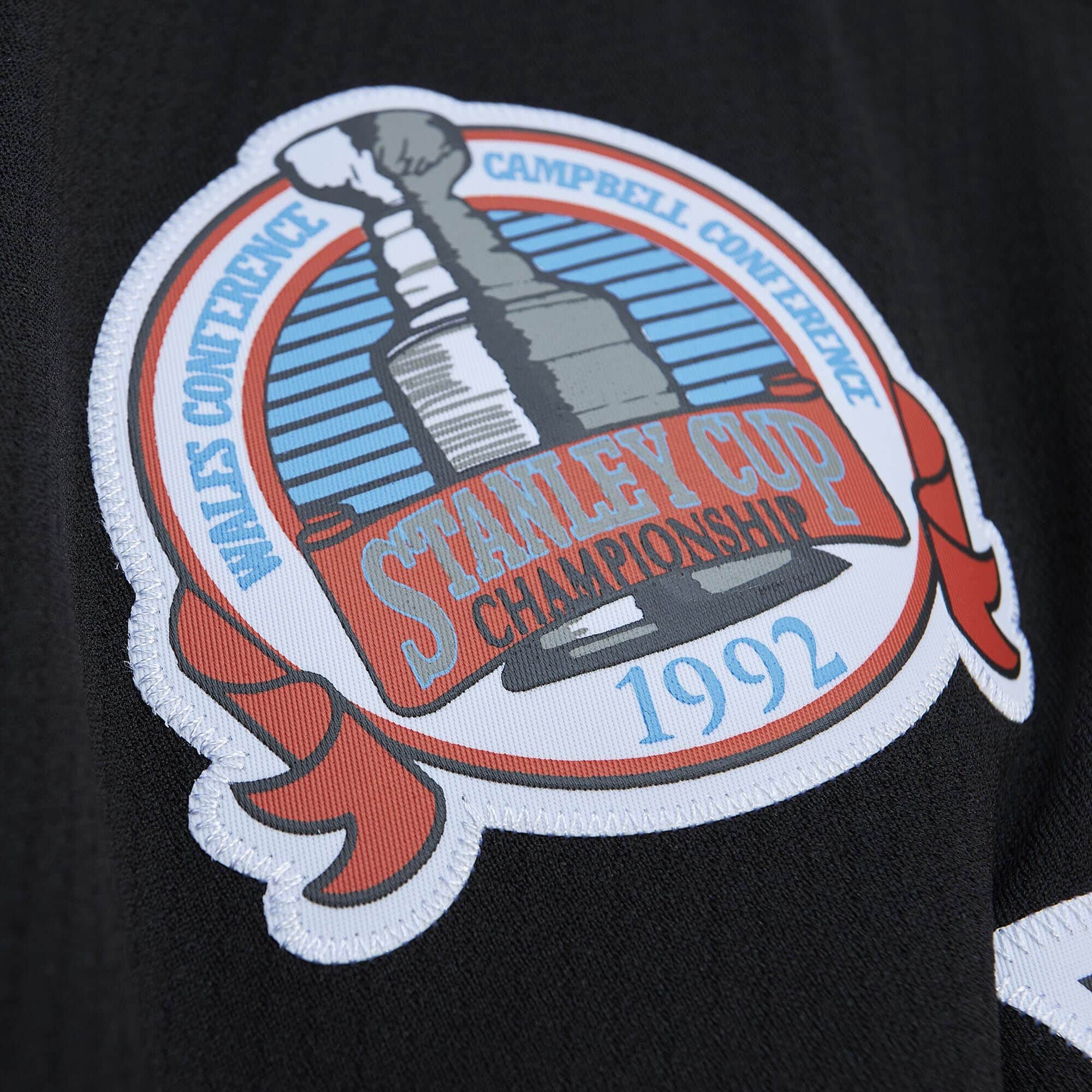 The Mitchell & Ness Vintage Hockey label (NHL Blue Line) is sewn on the front hem, as is the player's name including the year. The player number and the player's name are also sewn on the back. The classic design is rounded off with the sewn-on numbers on the sleeves, the team patches on the shoulders and the Stanley Cup patch on the front.