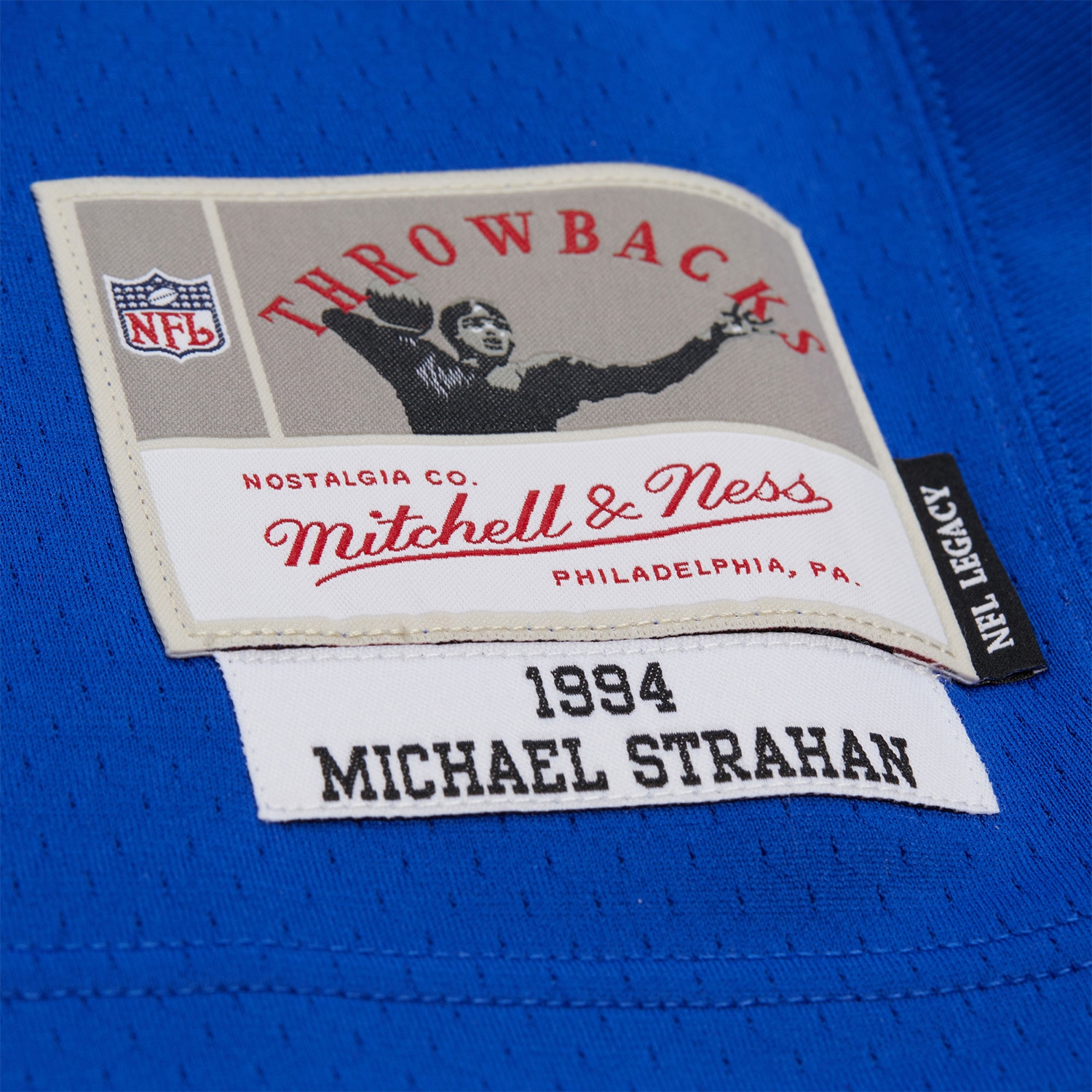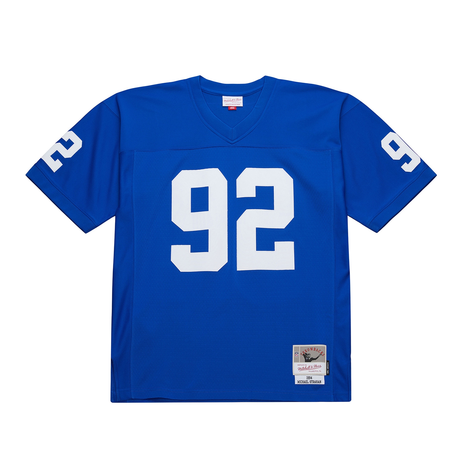 Honor one of the most dominant defensive ends in NFL history with the official Mitchell & Ness Legacy Jersey of Michael Strahan. This classic throwback jersey pays tribute to Strahan's early years with the New York Giants in 1994 and features authentic retro style and high-quality twill details.
