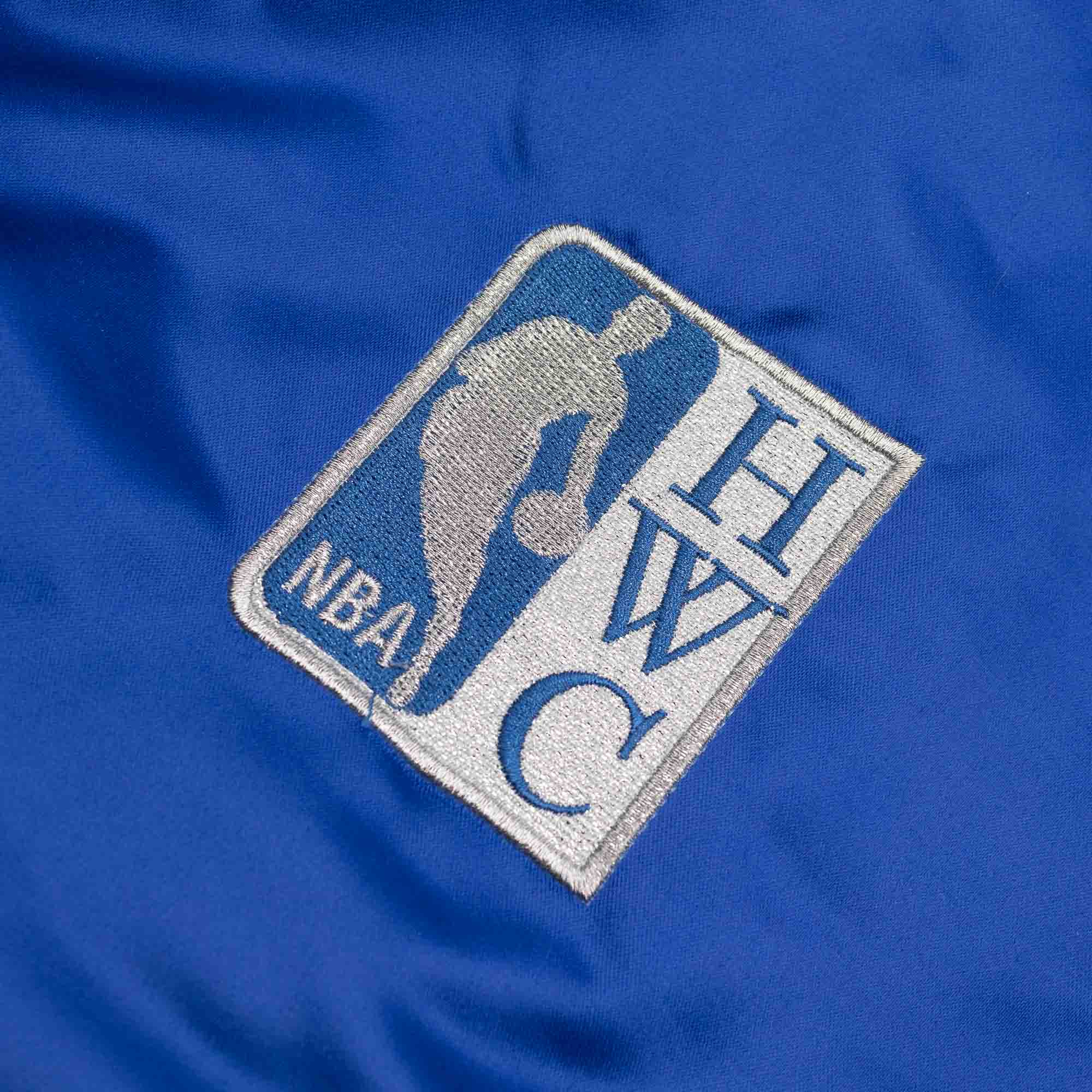 Bring back the legendary NBA All-Star Game atmosphere with this limited Mitchell and Ness collection. The heavyweight NBA satin jacket features NBA Eastern Conference and NBA HWC logo embroidery on front, Large NBA Eastern Conference logo on back and sublimated classic conference team logos. Mitchell & Ness logo embroidered on right sleeve cuff. Rib-knit collar, cuffs & waistband. Two front pockets, inside pocket and full front zip.