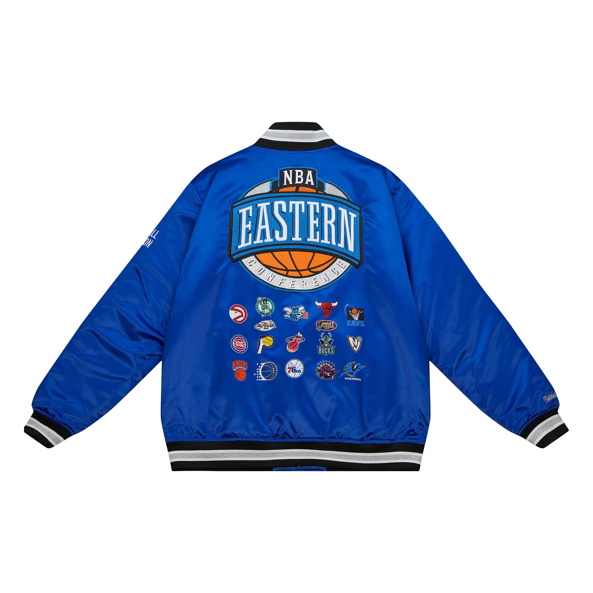 Mitchell & Ness NBA All-Star Edition Men's Heavyweight Satin Basketball Jacket featuring Eastern Conference Logos.