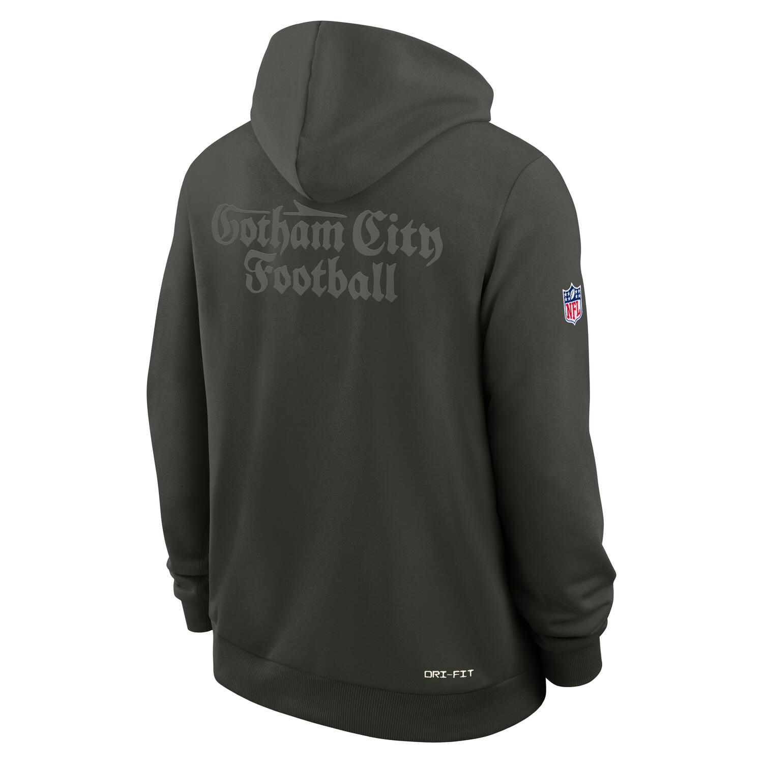 Show your true Rivalry spirit with the Nike New York Jets Hoodie from the 2025 Rivalries Collection! The all-olive design with embroidered logo celebrates the franchise's storied legacy. Featuring soft fleece with Dri-FIT technology for warmth and moisture management, plus functional details like dolman sleeves and an extra zip pocket, this hoodie delivers both performance and style. Part of the official NFL On-Field Sideline Collection - made for all Gotham fans!