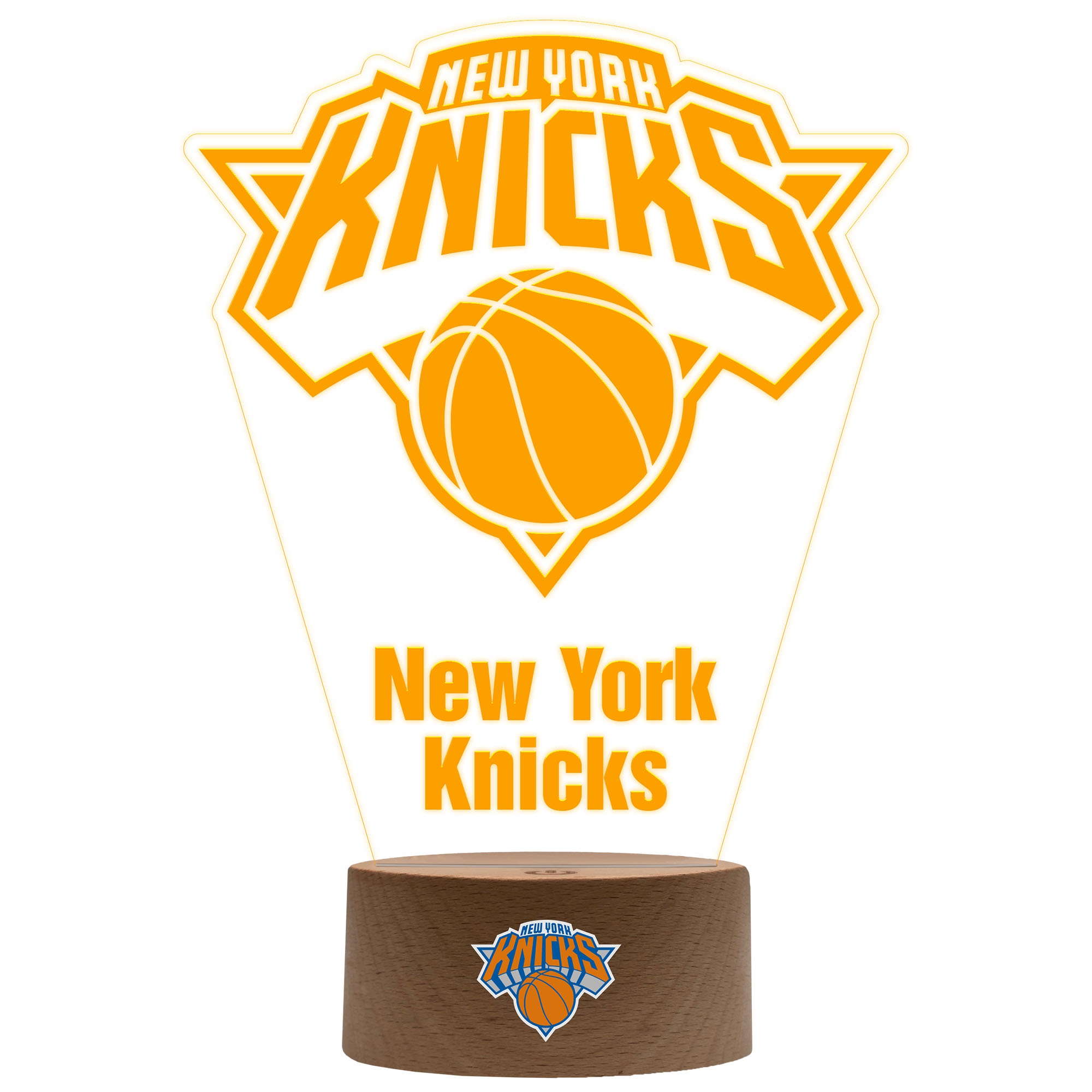 The LED team logo sign lights up all NBA eyes! The laser-engraved acrylic sign comes in an authentic basketball court design including your New York Knicks' team logo. The sign can be assembled easily with the included NBA base.