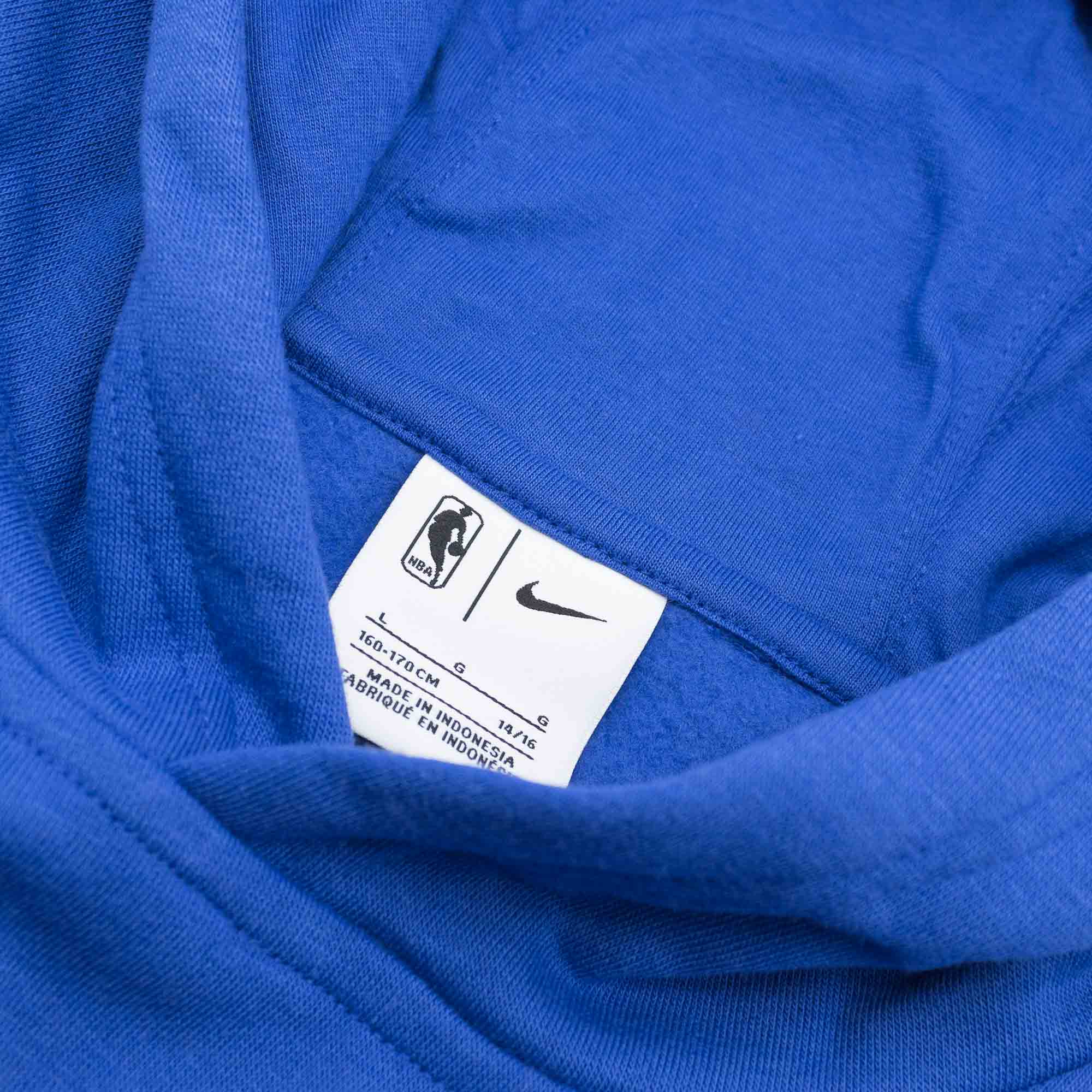 Decorated with NBA team logo graphics this youth hoodie lets the youngest cheer for their favourite team. The cozy cotton polyester fleece provides maximum comfort. With large front hand pocket and attached hood to offer extra warmth. Front features large New York Knicks team logo print and small Nike Swoosh logo on right chest.
