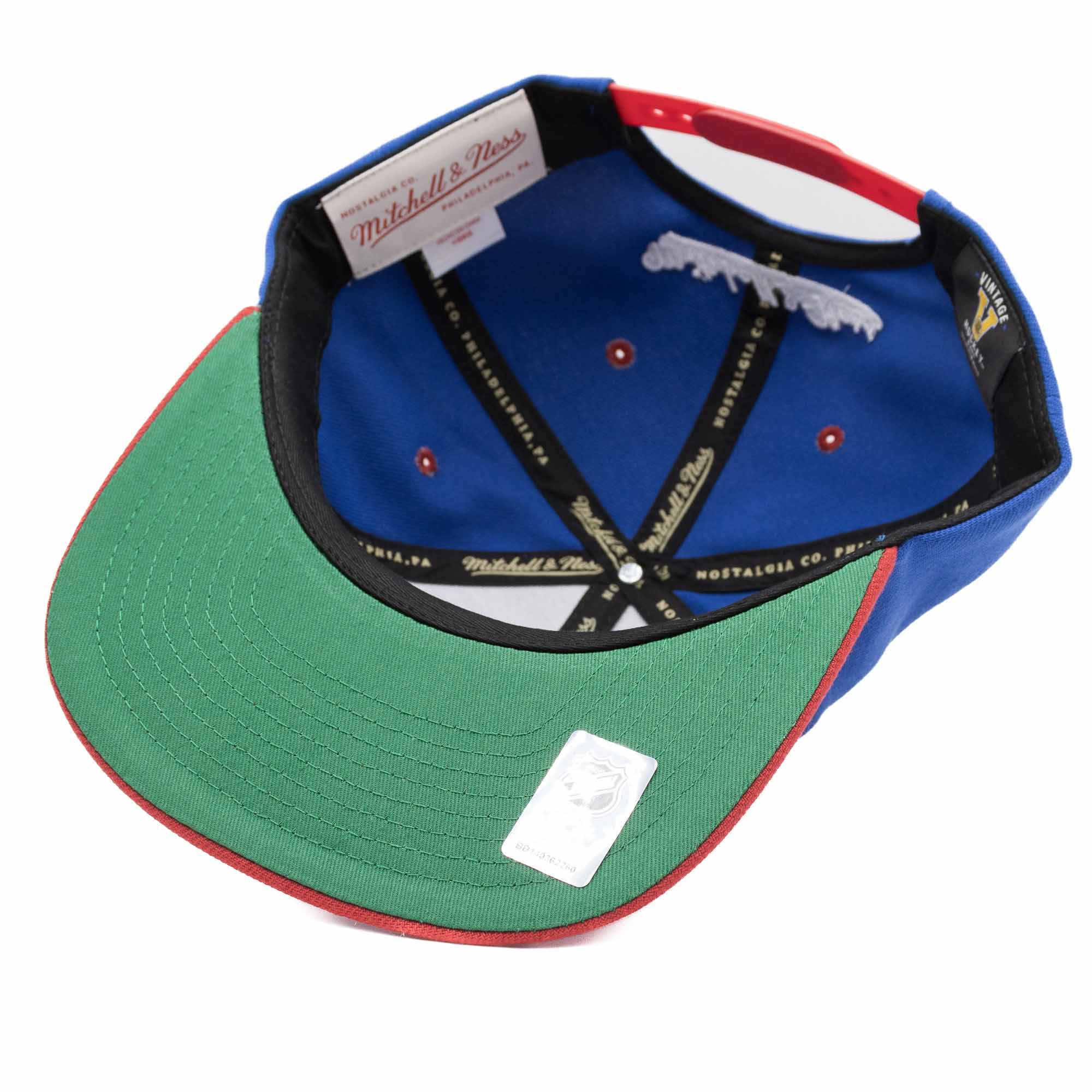 Mitchell & Ness Original Fit Snapback profile with a high structured crown and small, flat visor. Stitched eyelets for breathability. Interior includes branded taping as well as a moisture absorbing sweatband. A snapback closure for an adjustable fit.