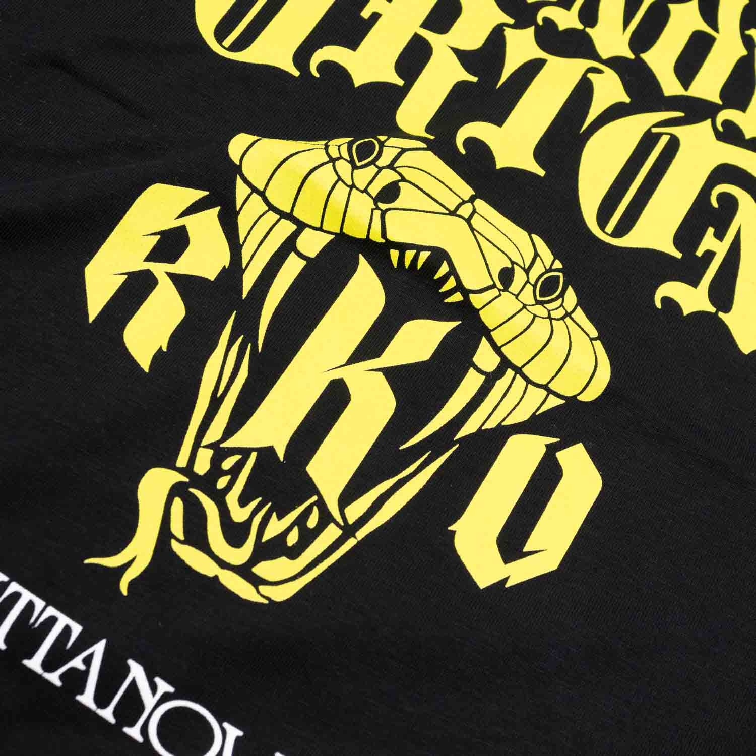 This officially licensed WWE T-shirt pays homage to the legendary WWE Superstar Randy Orton and his famous finishing move, the "RKO." Featuring a menacing snake design, the bold "RKO" lettering, and the iconic hashtag #OUTTANOWHERE, this shirt is a must-have for all fans of the "Viper."