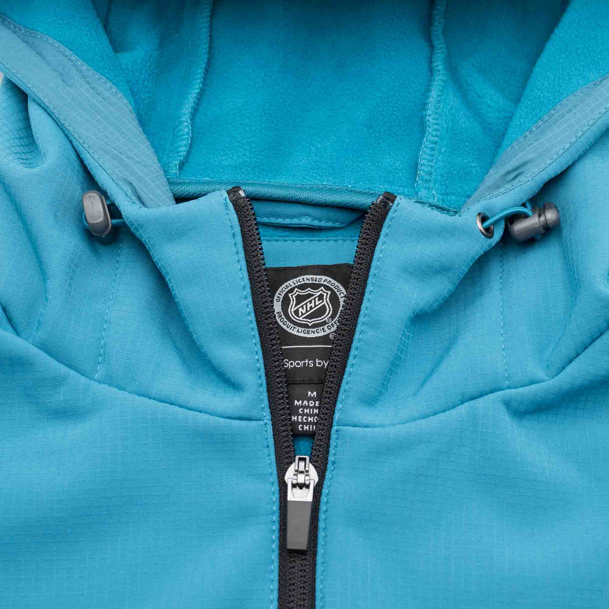 This NHL Soft Shell jacket protects you from the elements. This jacket offers high quality San Jose Sharks embroidery on front and back. The standing collar, hood and the two side pockets provide needed protection from the elements.