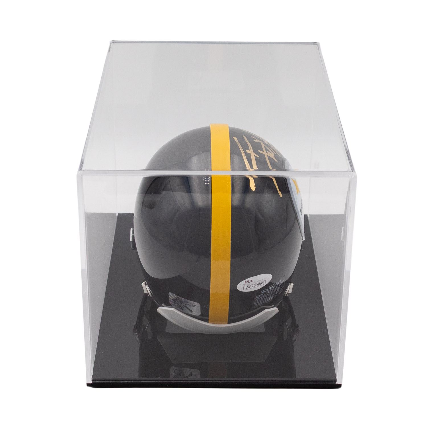 Display your football mini helmet like a true collectible! The TAASS.com Acrylic Mini Helmet Display Case protects your helmet while presenting it in a professional way - whether on your shelf, in a showcase, or at the office.