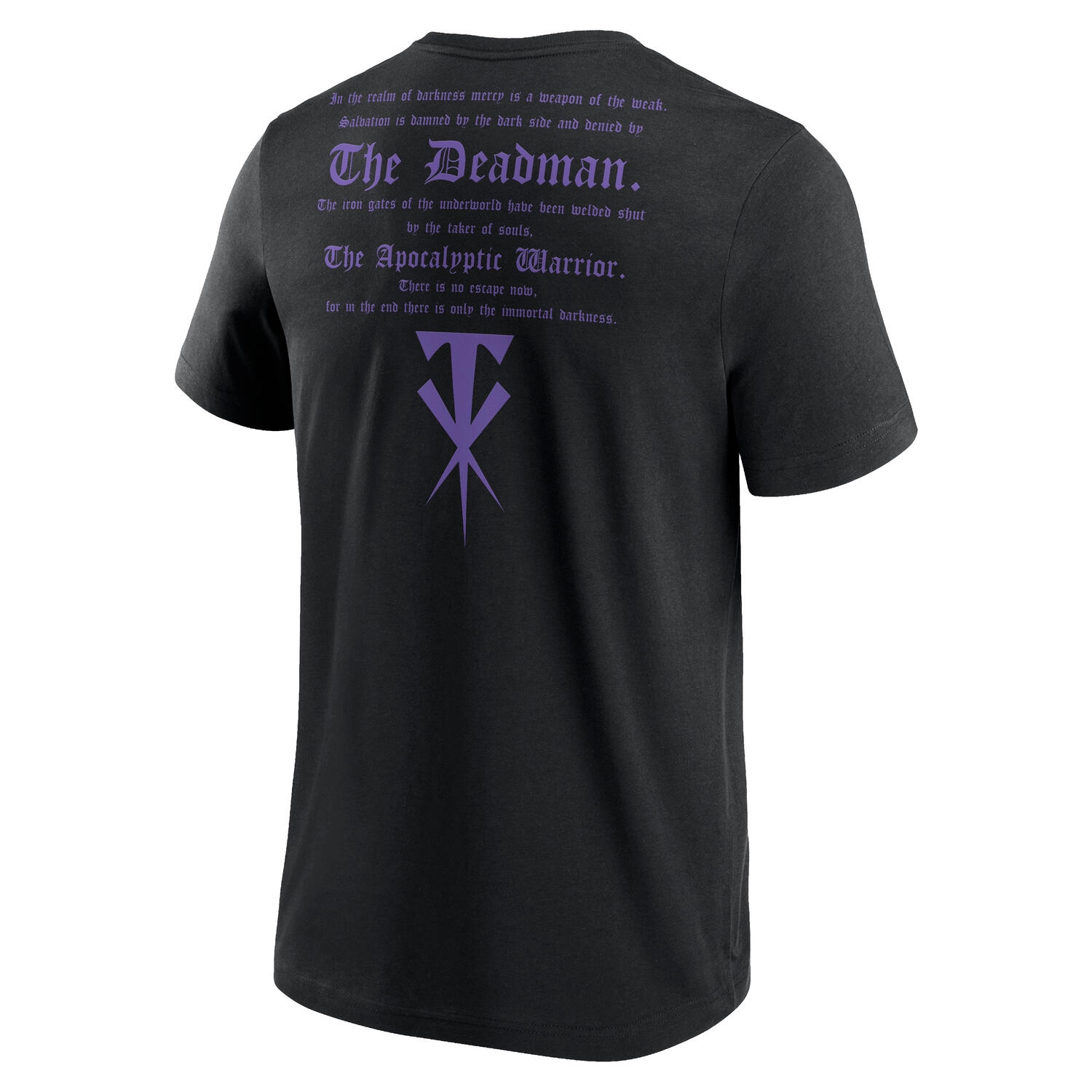 This officially licensed WWE T-shirt is a tribute to the legendary Undertaker, also known as "The Deadman." Featuring his iconic symbol on the front and a powerful text on the back that embodies his dark, enigmatic persona, this shirt is a must-have for true fans of the Undertaker's legacy.