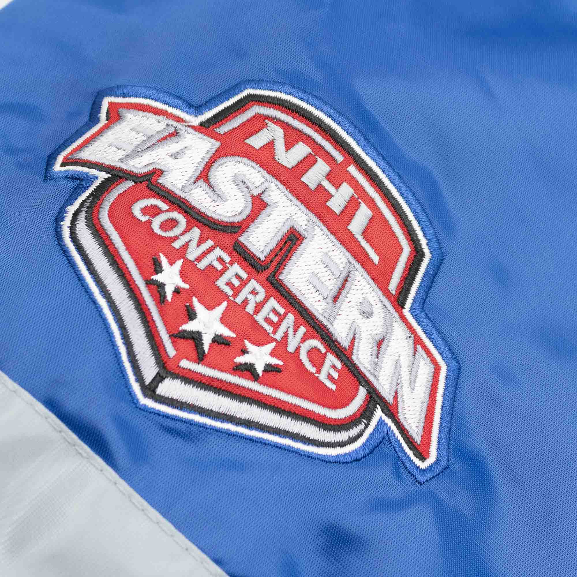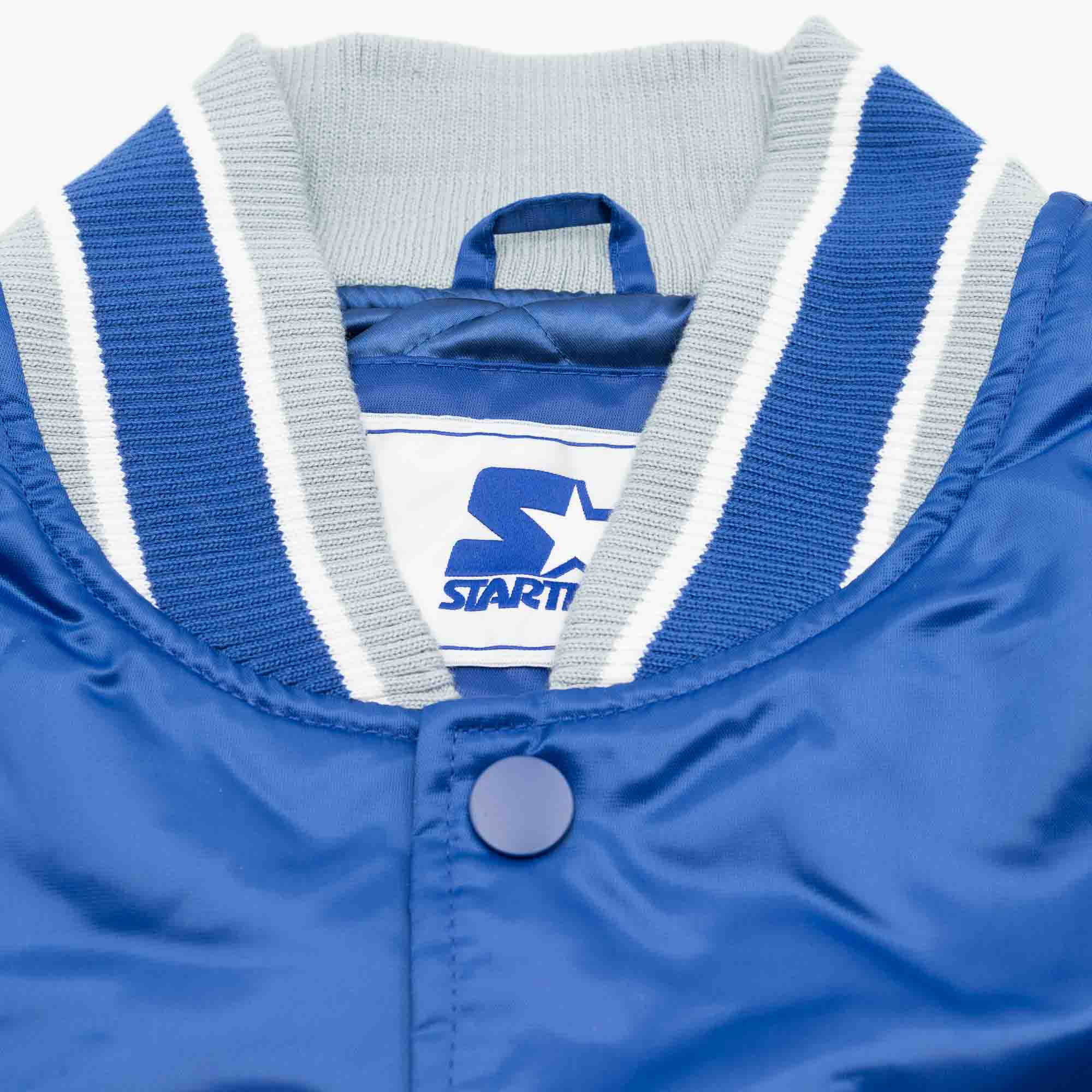 This Starter Varsity Satin Jacket comes in a modern US sports design and impresses with the fully embroidered team applications and the contrasting stripes on the shoulders. The front of the jacket features large Toronto Maple Leafs team lettering, the back is decorated with the oversized team logo. The unique starter design is rounded off with the conference logo on the right sleeve. The legendary Starter logo can be found on the left sleeve as a high-quality embroidery, as well as in the collar and on the inside pocket as a sewn-on label.