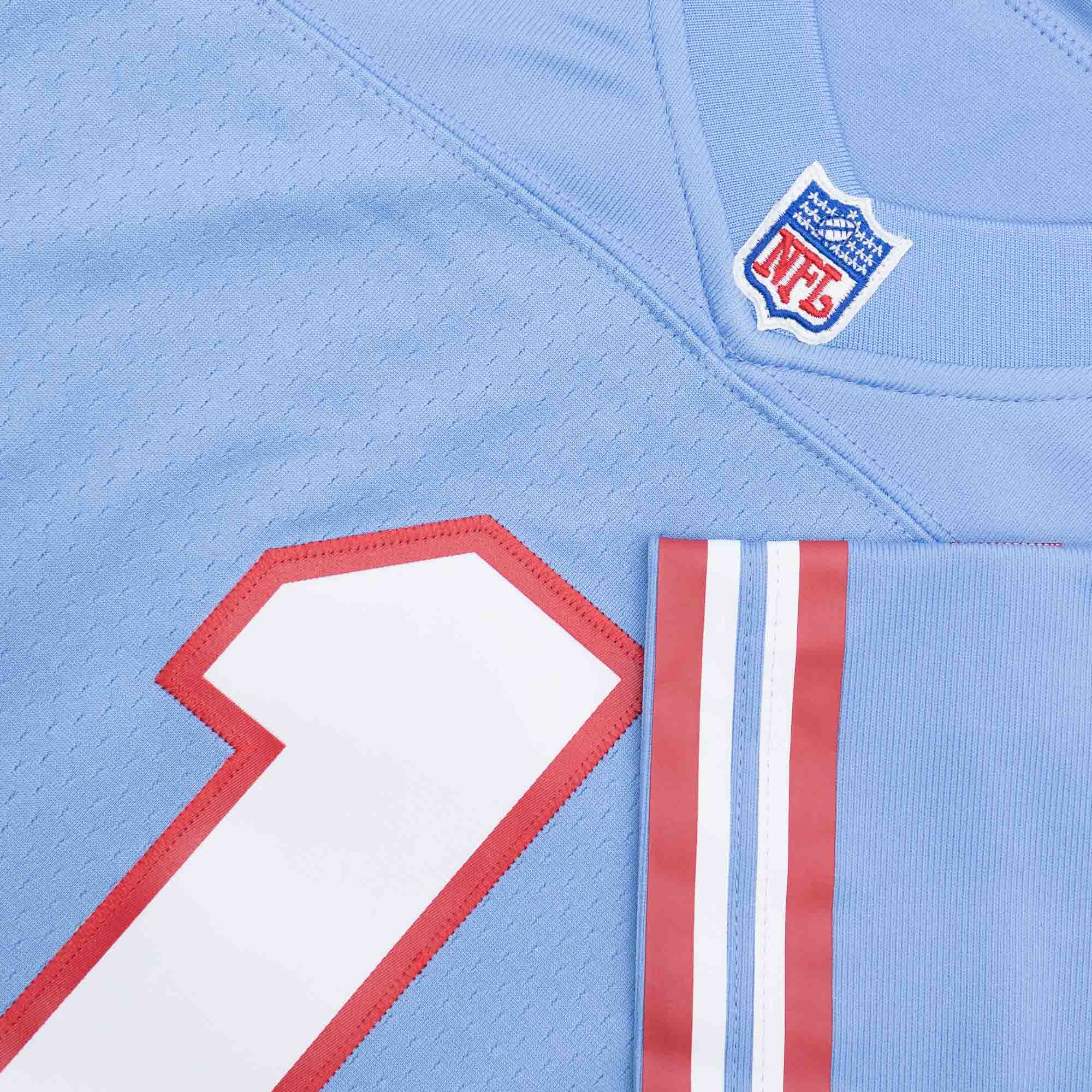 Rep your favorite team and player anytime in the NFL Throwback Jersey, inspired by what the Houston Oilers have worn on the field and designed for total comfort. High quality stitched letters and numbers, strategic ventilation for breathability, body made from 100% polyester, woven NFL-Mitchell & Ness tag (Legacy Collection) at front lower left.