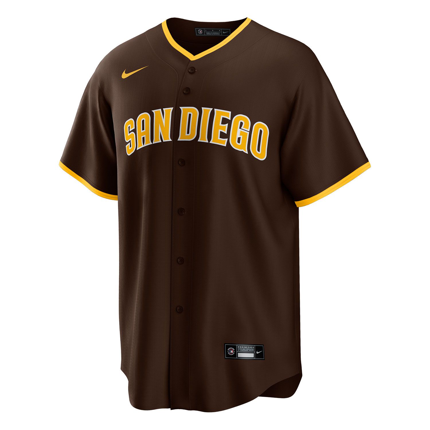 Nike MLB Herren Baseball Player Trikot von San Diego Padres Superstar Fernando Tatís Jr. im offiziellen Replica Road Design.